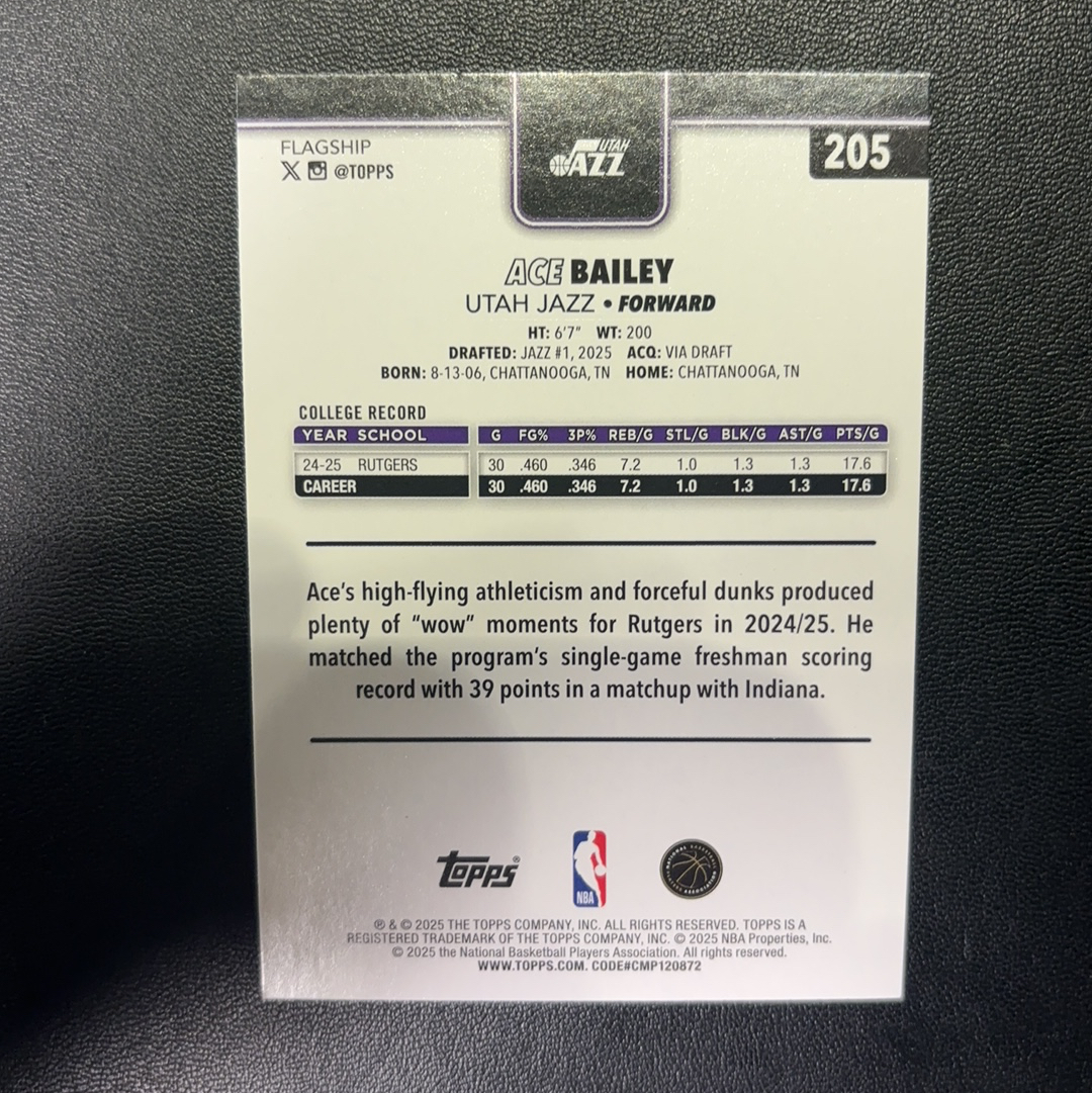 2025 Topps Basketball Ace Bailey RC 艾斯 贝利 新秀 250编 紫彩虹平行 爵士 SH008 H161120