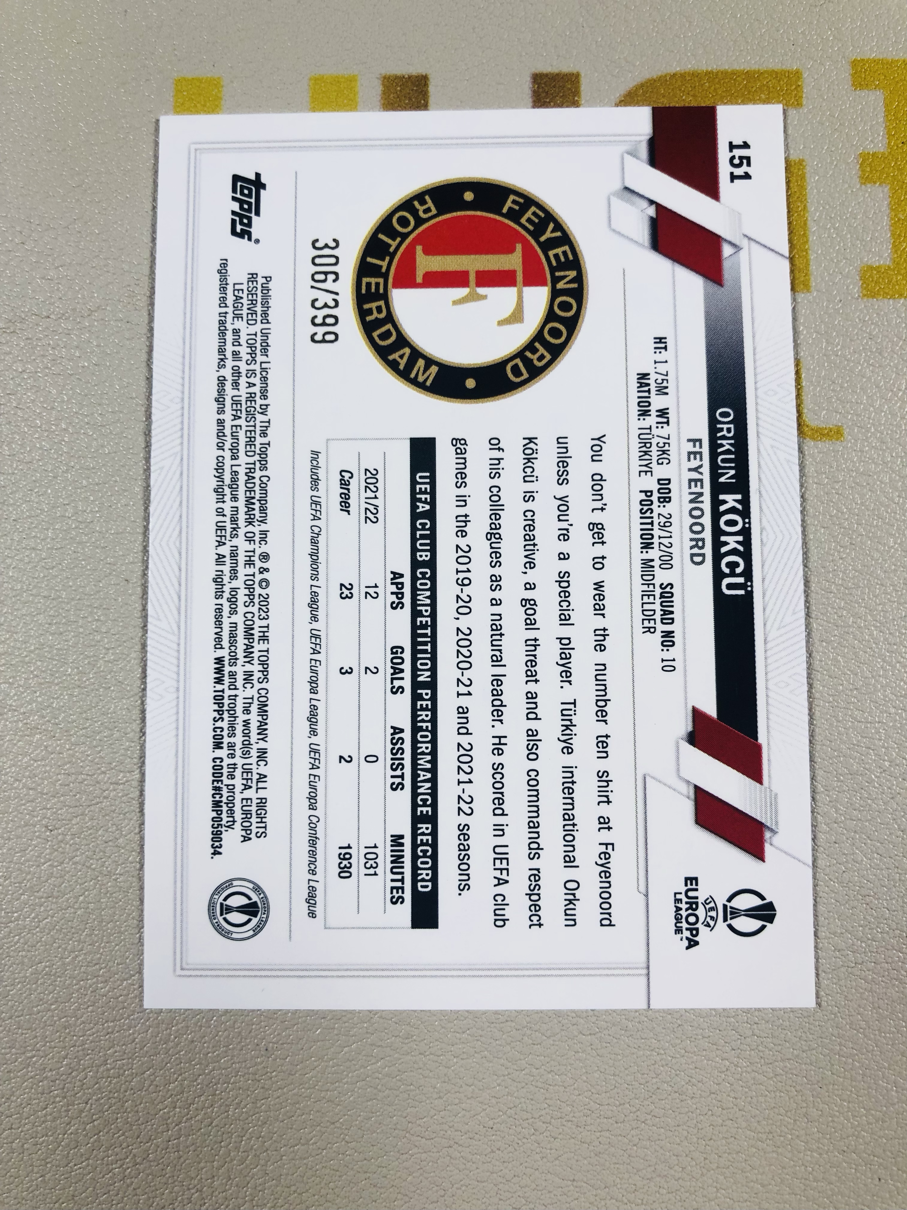2023 Topps UCC Orkun Kökcü RC 欧冠 UCC 新秀 费耶诺德 柯克曲 306/399编 单卡低于10元无卡夹介意勿拍 钢子1118