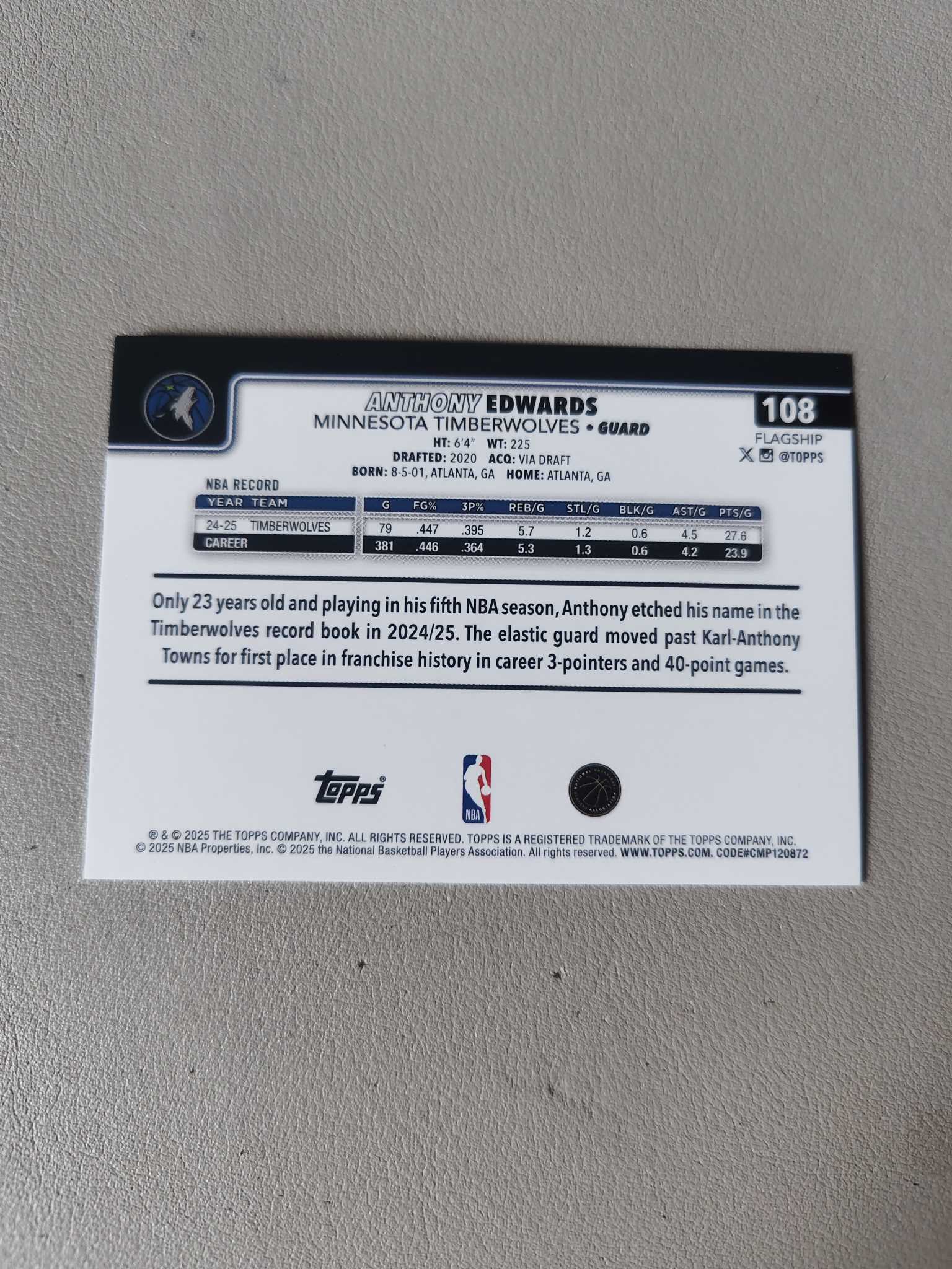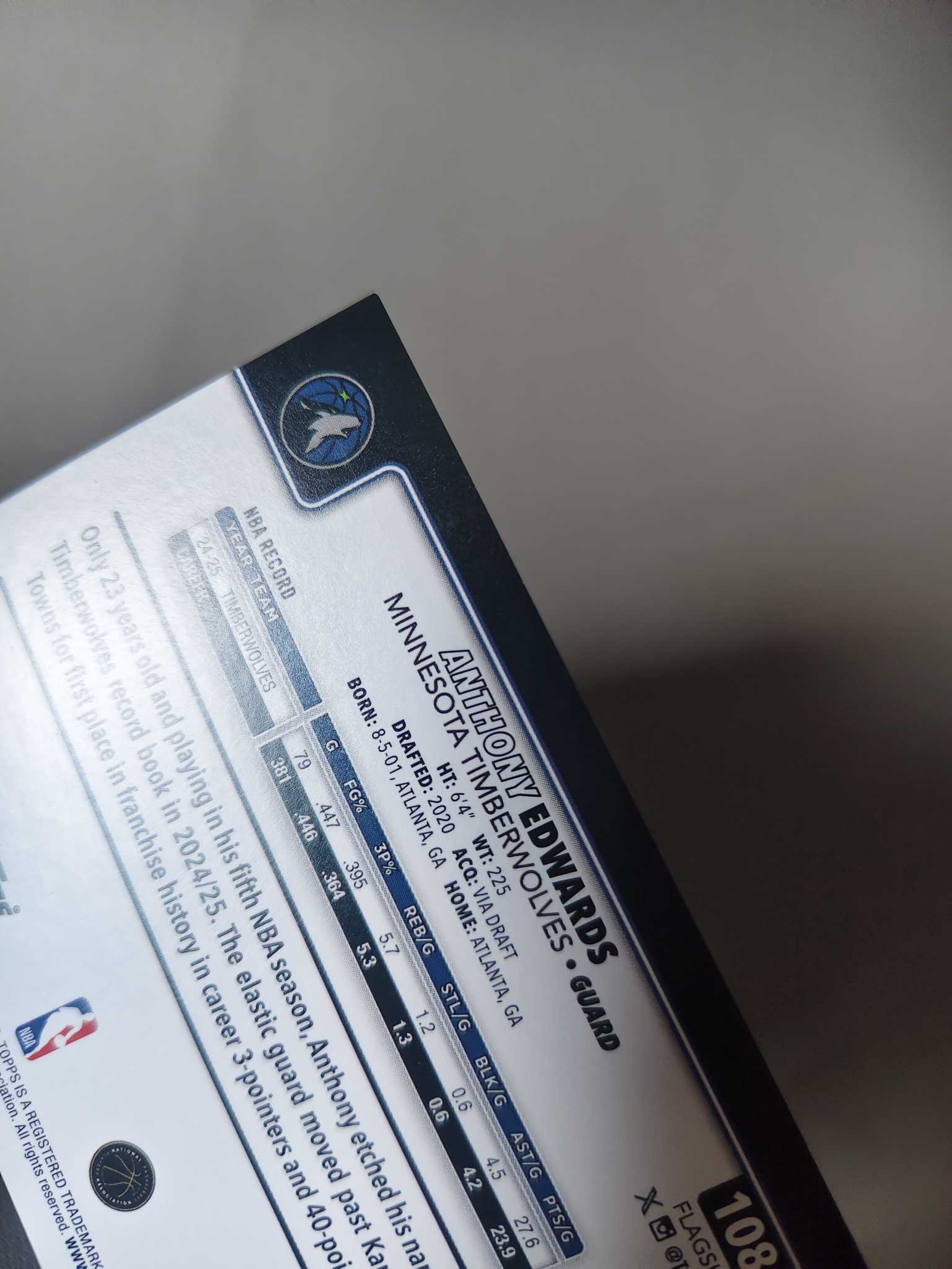 【佩妮拍卖】2025 Topps Anthony Edwards 安东尼 爱德华兹 华子 森林狼 当家球星 红折 4/5编 卡品如图 拍前请阅读描述 夹心1120