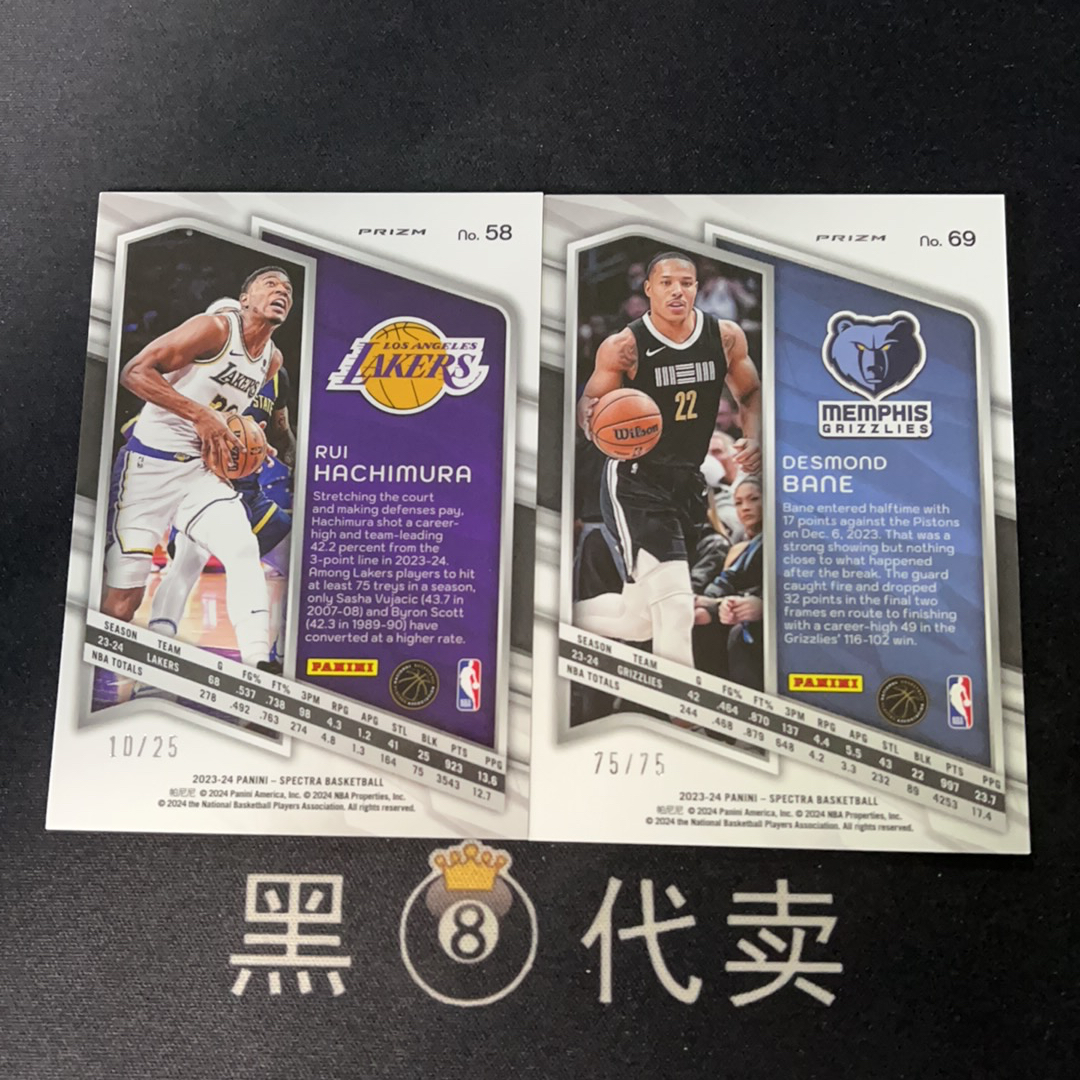 96【黑8代卖】2023-24 Panini Spectra 光谱 德斯蒙德 贝恩 75/75编 尾编 八村垒 10/25编 折射 2张打包出售Lot不保卡品【Victory哥-22】