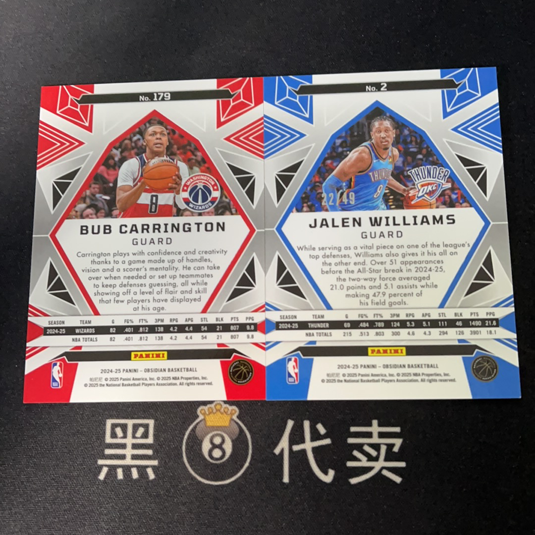 98【黑8代卖】2024-25 Panini Obsidian 黑曜石 卡林顿 RC 新秀 红折 杰伦 威廉姆斯 碎冰折 22/49编 折射 2张打包出售Lot不保卡品【Victory哥-22】