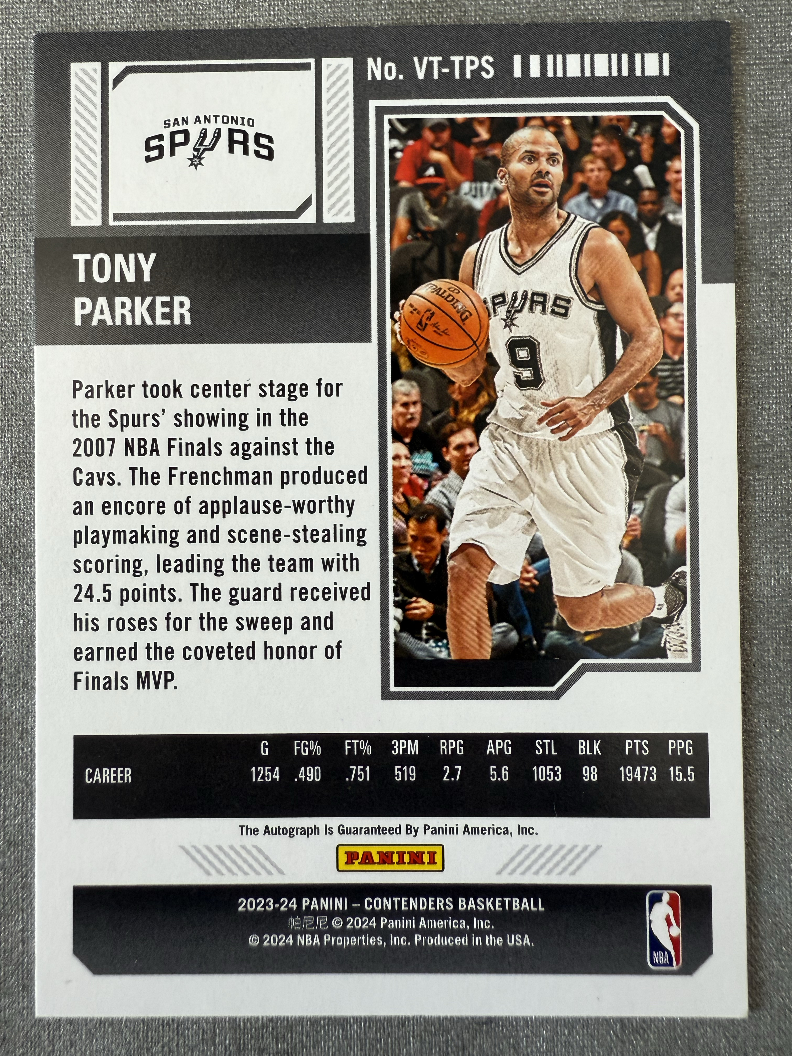 2023-24 Panini Contenders Tony Parker 帕克 马刺 49编 银折 球员签字卡 卡签 凑套必备 值得收藏
