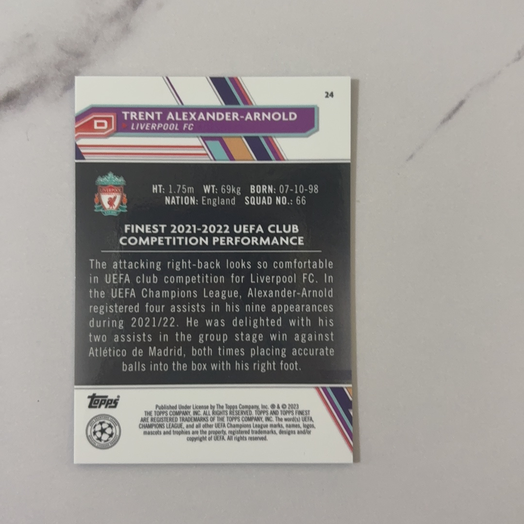 2023 Topps Finest Trent Alex Arnold 欧战finest系列 英格兰 利物浦 后卫 亚历山大 阿诺德 81/275编 蓝折 收藏必备 卡品如图 暴风熊代拍 飞
