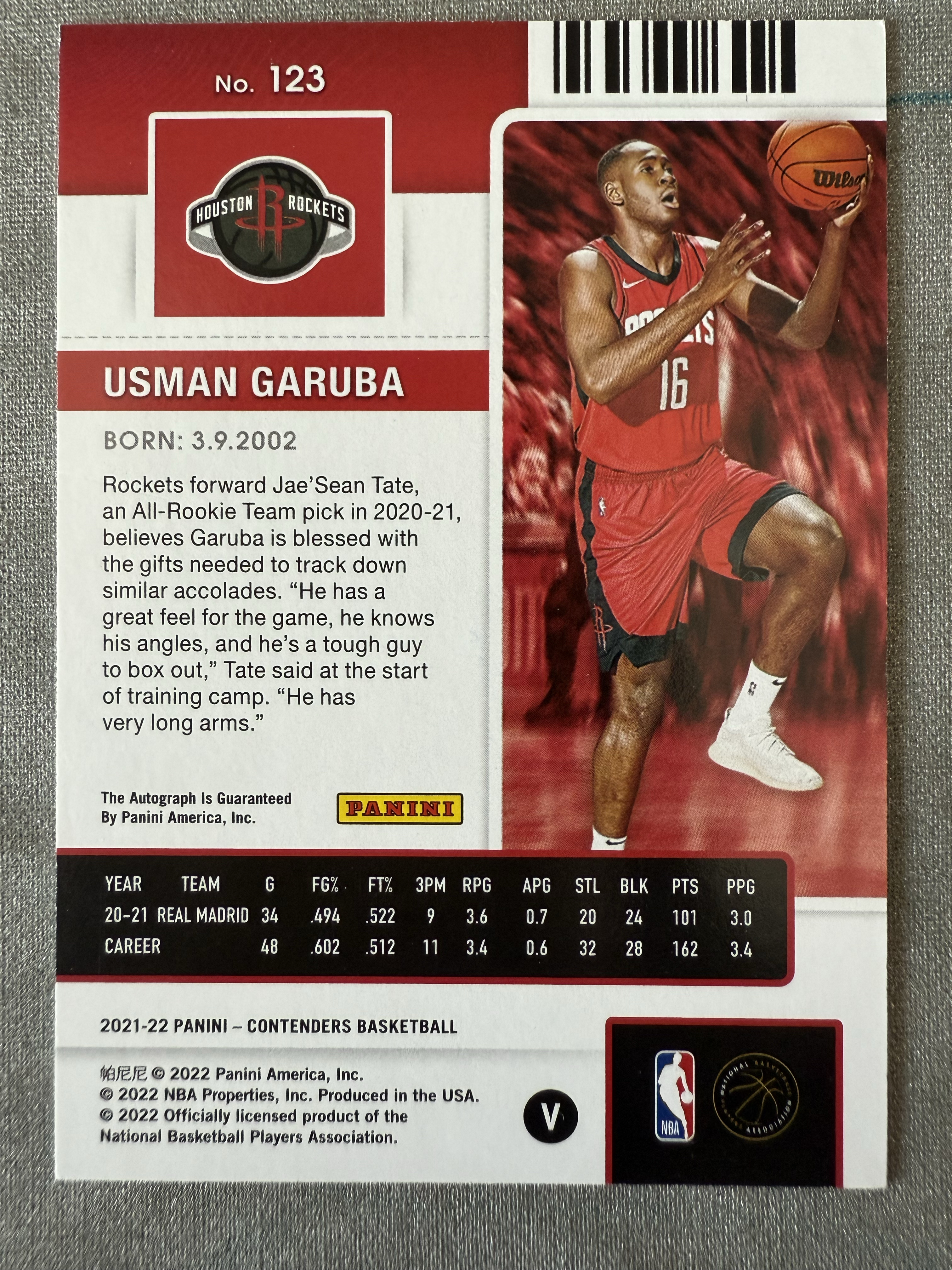 2021-22 Panini Contenders Usman Garuba RC 加鲁巴 新秀 火箭 99编 球员签字卡 卡签 凑套必备 值得收藏