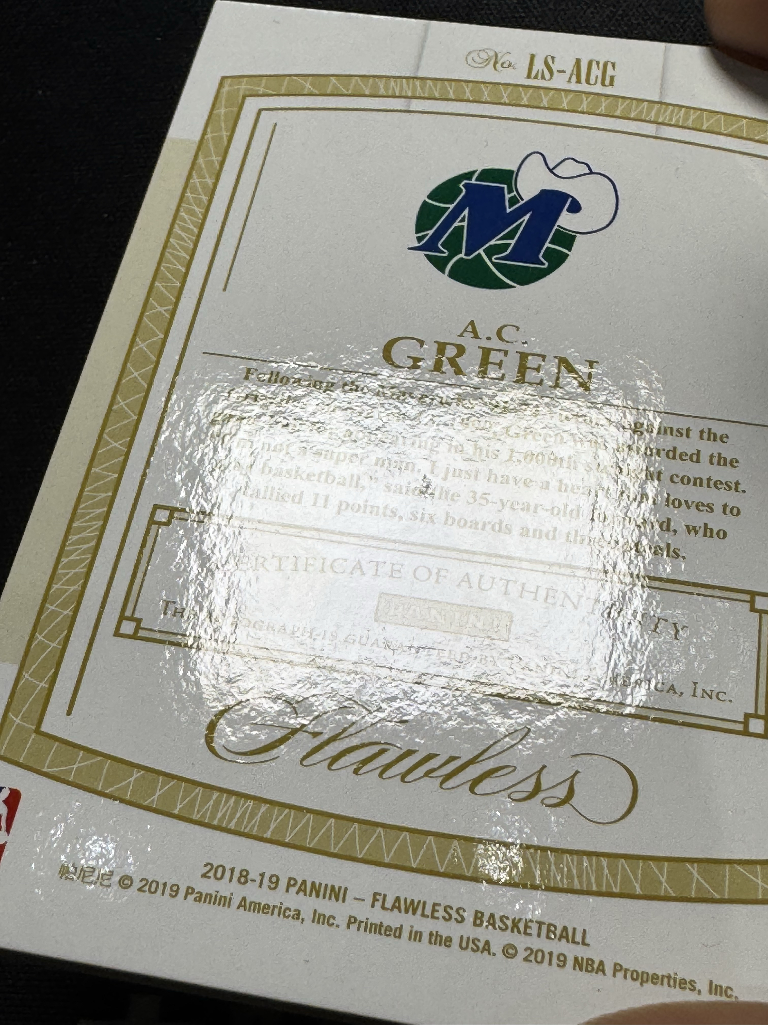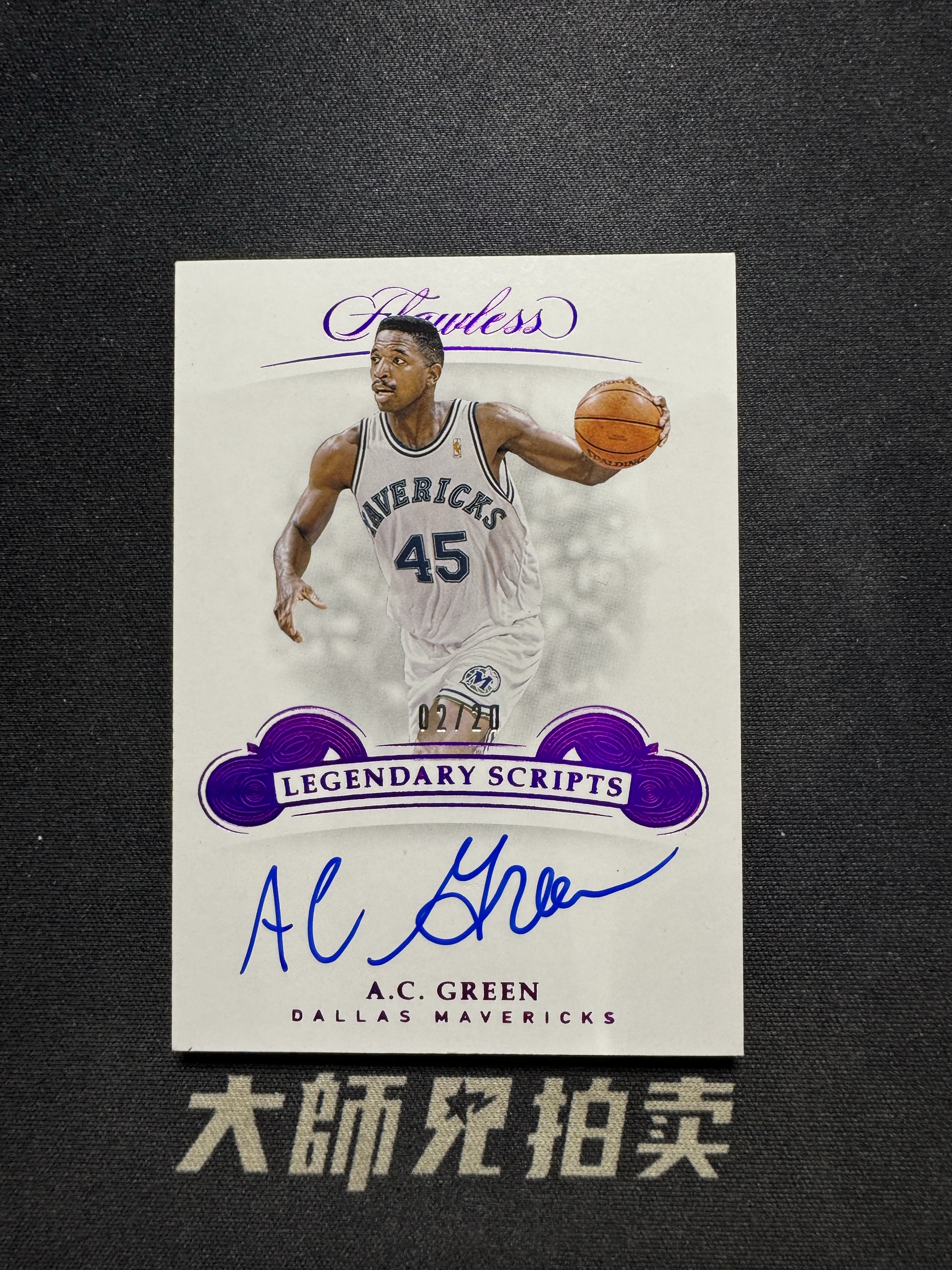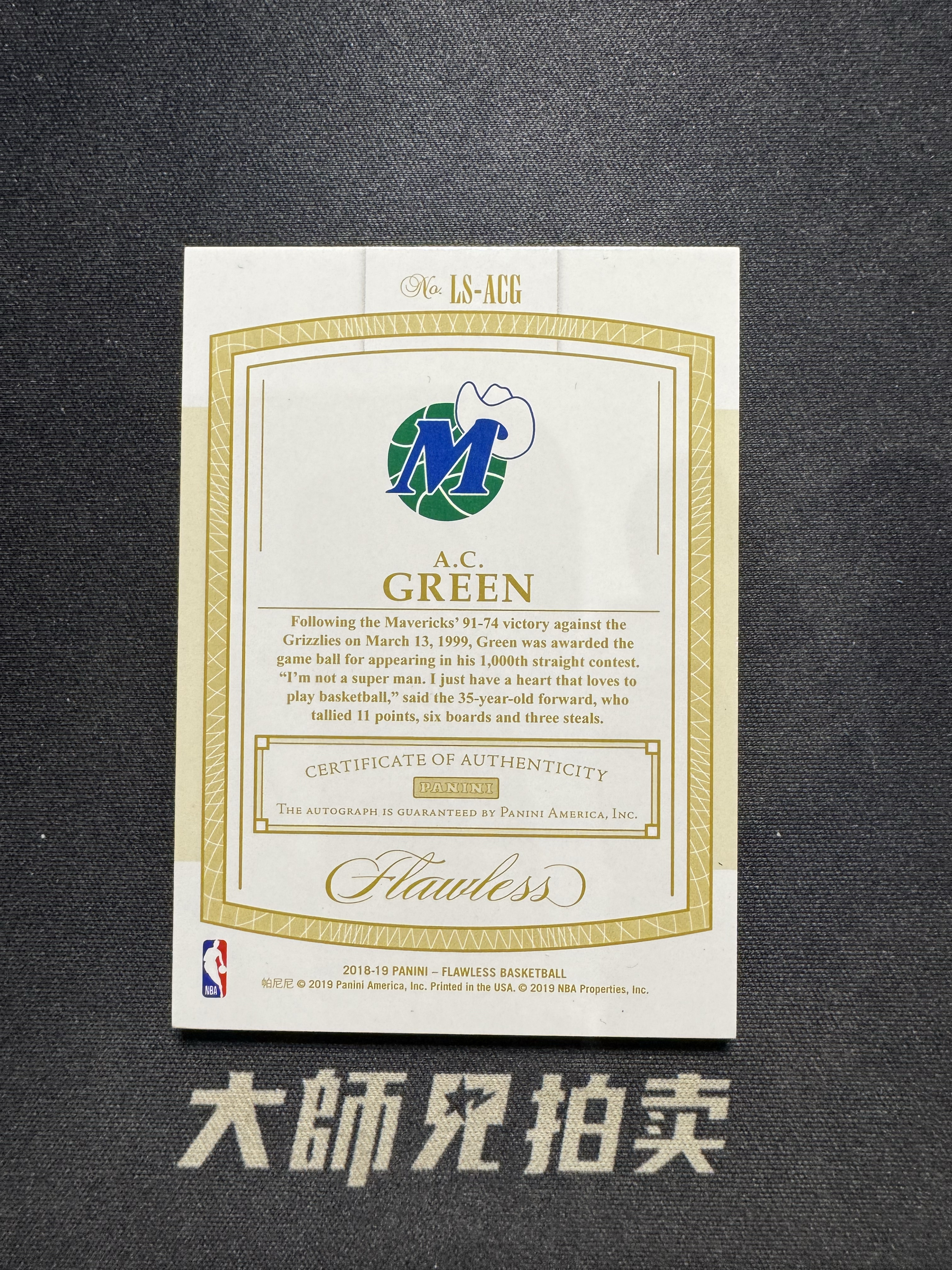 【大师兄拍卖】2018-19 Panini flawless A.C. GREEN 独行侠 ac 格林 手提 /20编 签字 卡签 紫平行 瑕疵如图 -鱼-