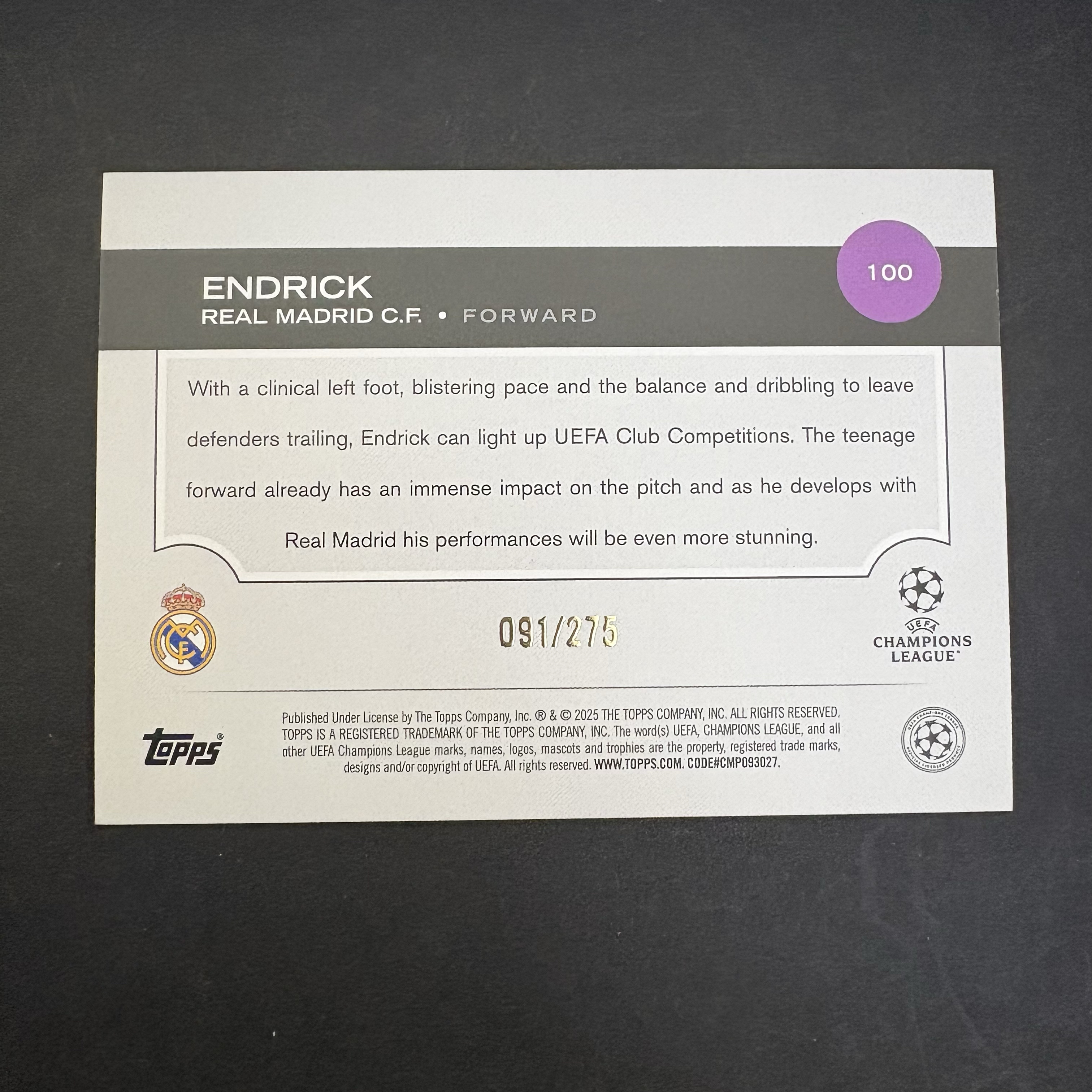 2024-25 Topps Chrome Endrick RC 欧冠 皇马 巴西 恩德里克 新秀 /275编 深蓝折 折射 超级妖人 未来可期 投资收藏 卡品如图