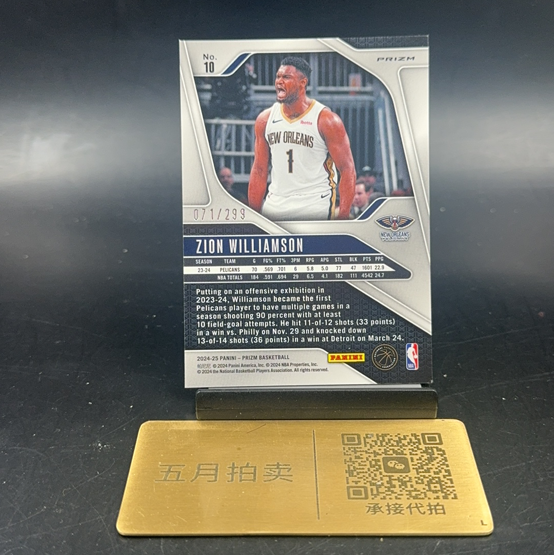 2024-25 Panini Prizm Zion Williamson 【五月拍卖 顺丰空运】pz 锡安 威廉姆斯 胖虎 红折 299编 折射 卡品如图 琉星g39
