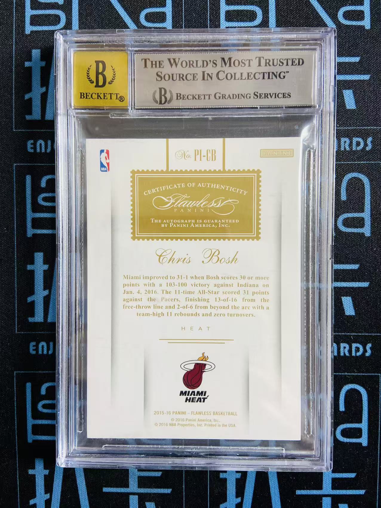 【扒卡拍卖】【拍前请看描述】2015-16 Panini Flawless Chris Bosh 手提 克里斯 波什 龙王 名宿 热火 签字 卡签 6/10编 板签 湖水蓝 INK签 SSP BGS9+10 评级卡 翻盘1125BK02