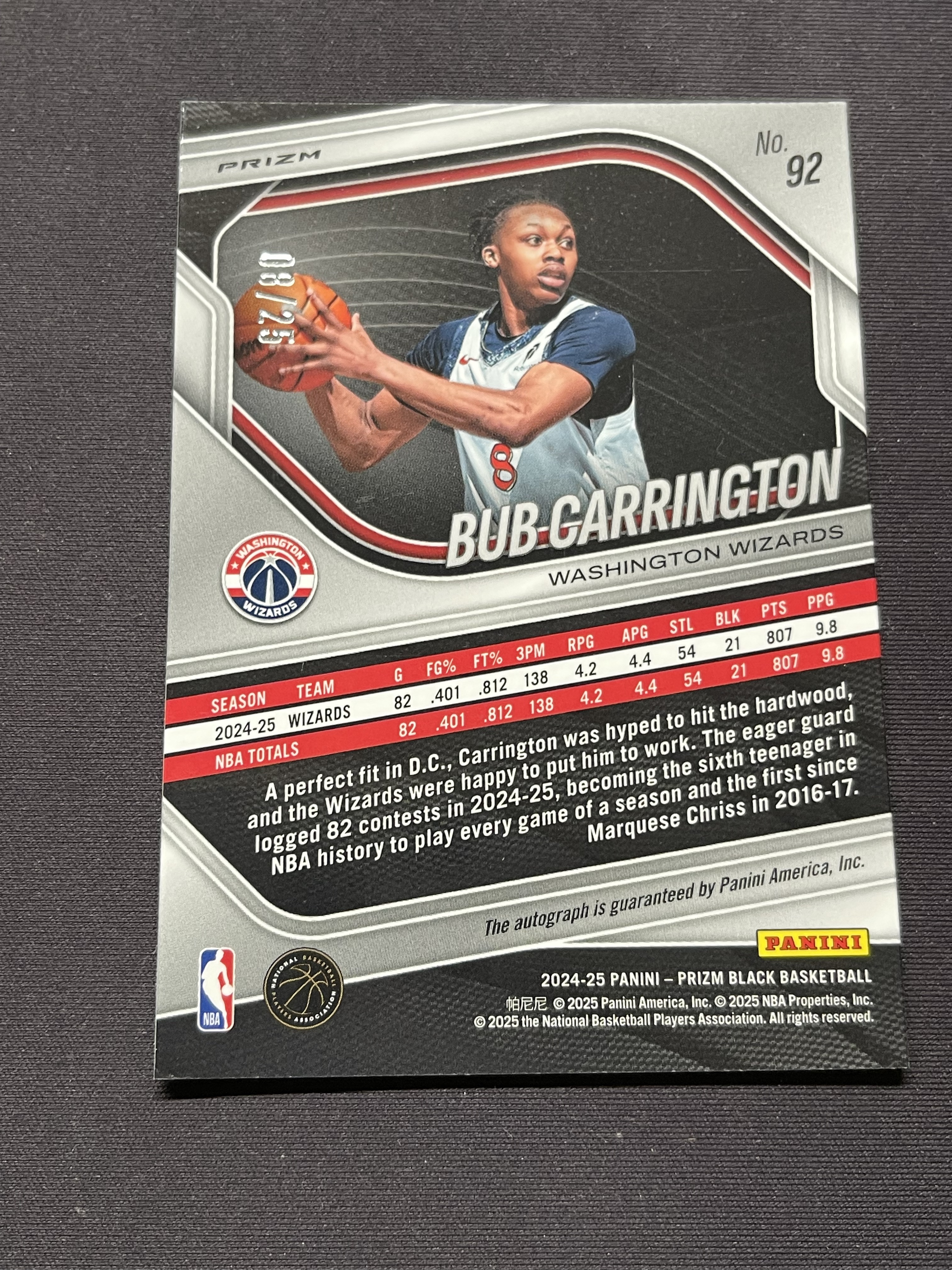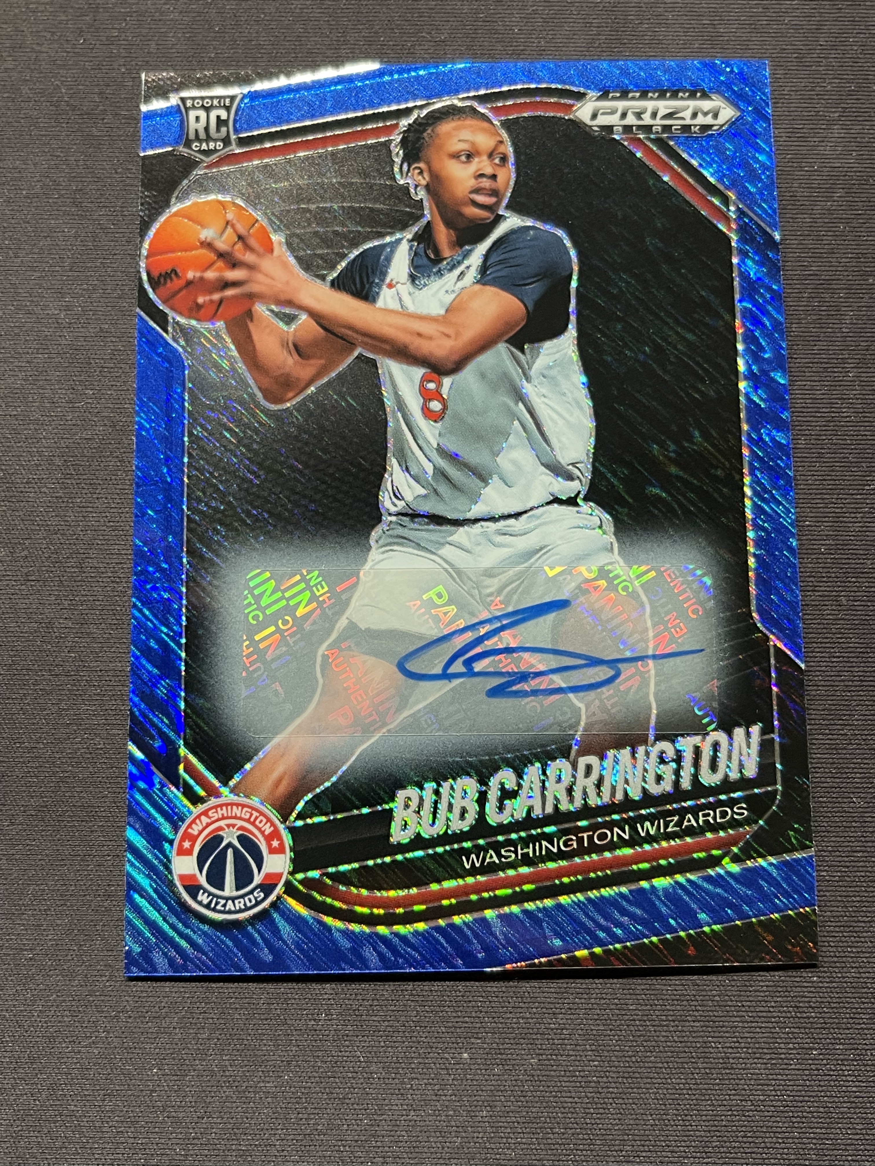 2024-25 Panini Prizm Black Bub Carrington RC 奇才 巴布卡林顿 新秀 蓝shimmer折 签字 折射 08/25编 不累计「老夫子」082