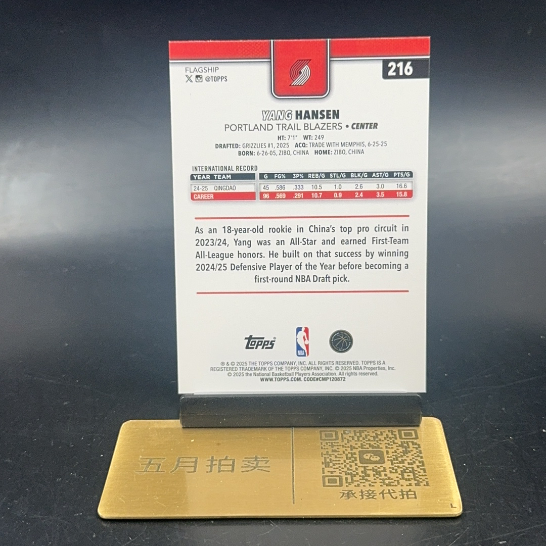 2025 Topps Basketball 杨瀚森 RC 【五月拍卖 顺丰空运】开拓者 杨瀚森 base 卡品如图 琉星g52
