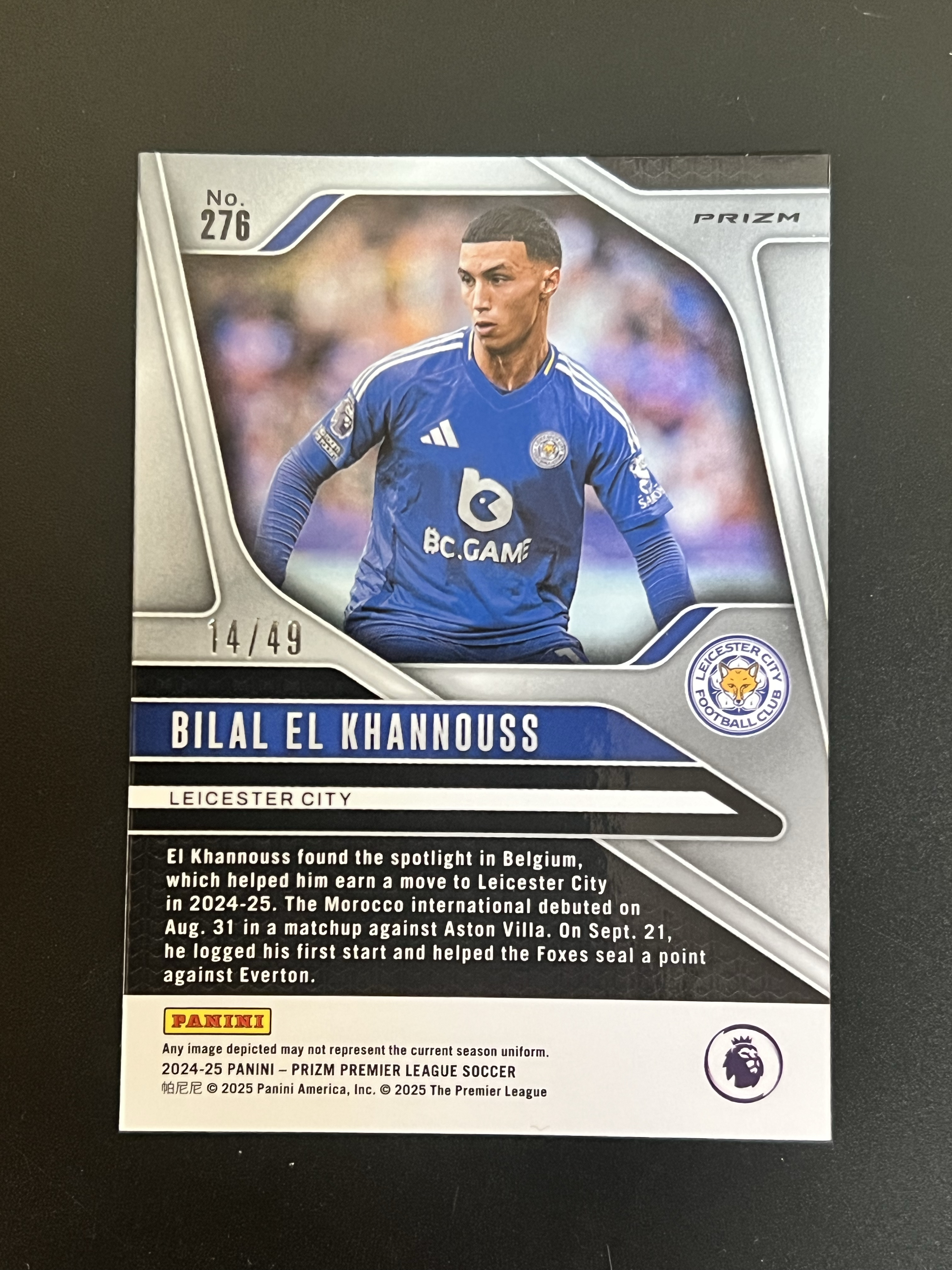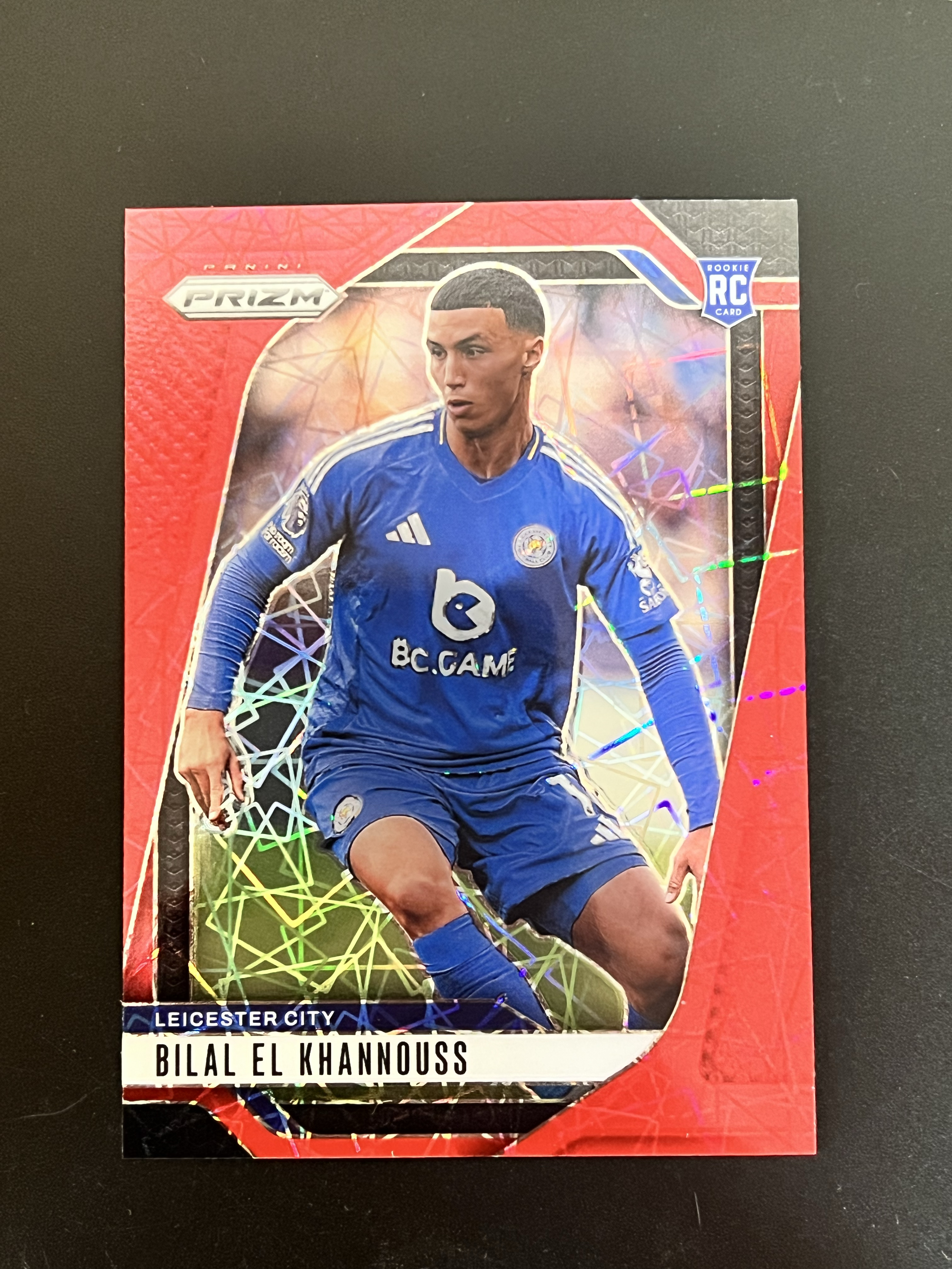 2024-25 Panini Prizm 英超 pz 莱斯特城 斯图加特 摩洛哥 Bilal El Khannouss RC 新秀 比拉勒 埃尔 汉努斯 14/49编 红镭射折 收藏必备