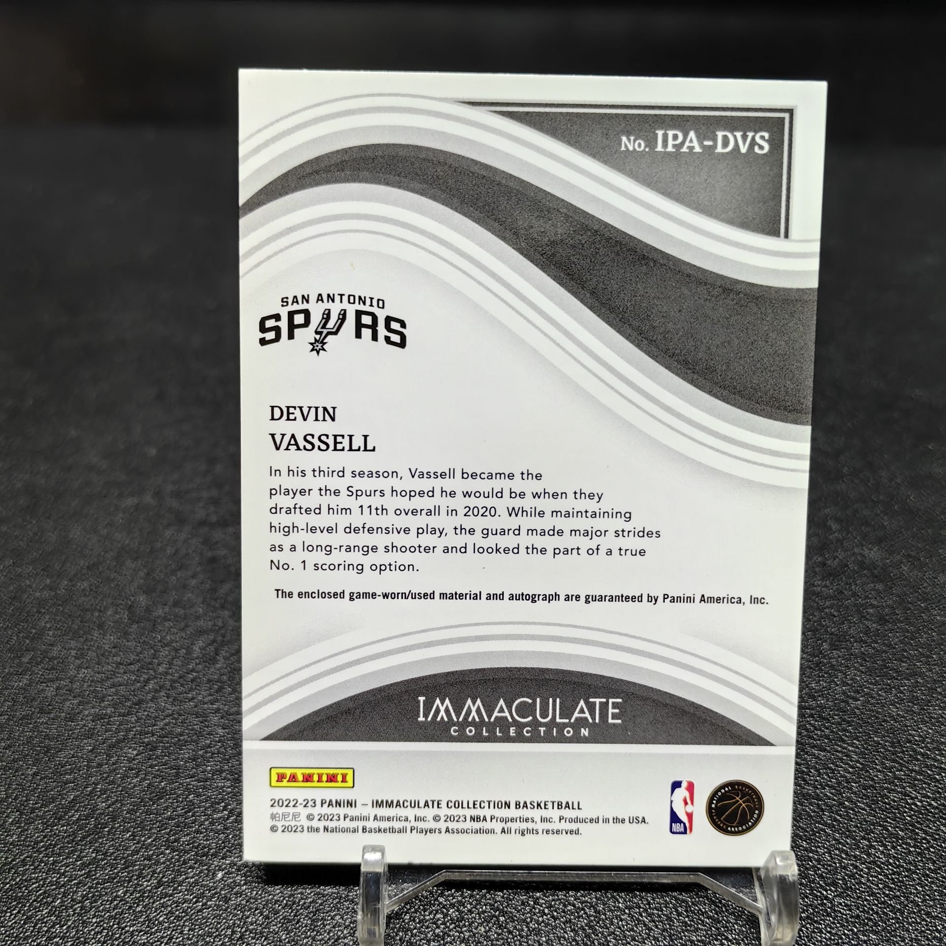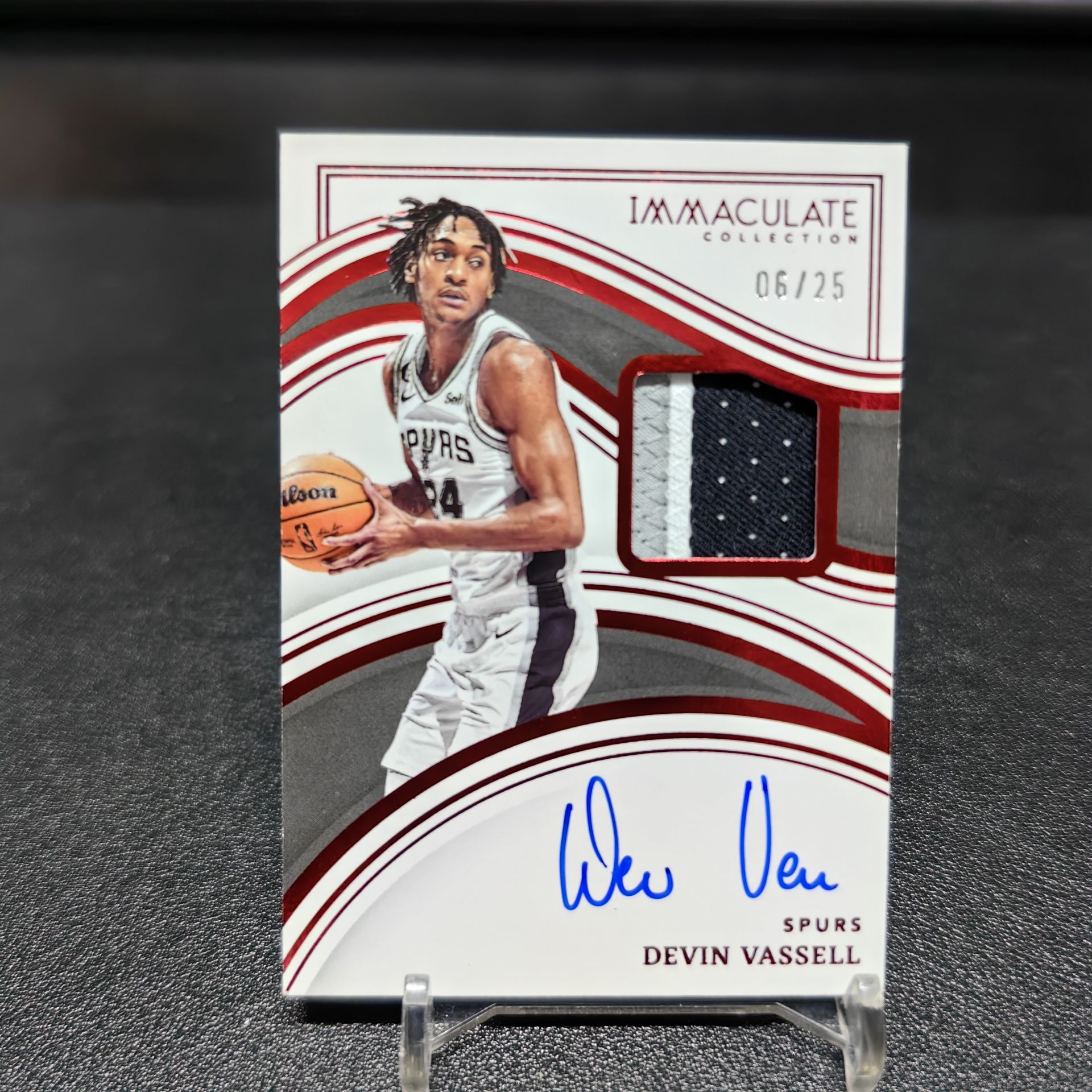 【浩行拍卖 截标预付82%】2022-23 panini immaculate Devin Vassell 马刺 德文 瓦塞尔 签字 卡签 球衣 物料 patch 红平行 6/25编 低编 专收必备 瑕疵看图「塑业」1120D06龘