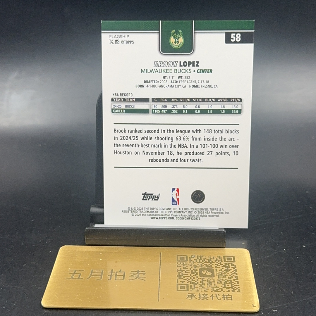 2025 Topps Basketball Brook Lopez 【五月拍卖 顺丰空运】洛佩斯 篮网折 50编 折射 卡品如图 琉星g60