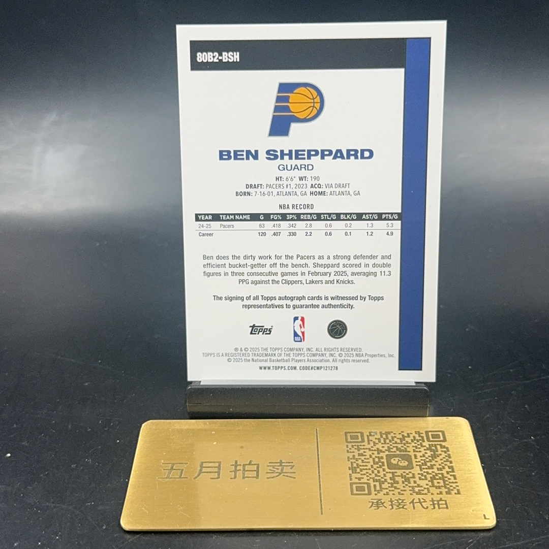 2025 Topps Basketball Ben Sheppard 【五月拍卖 顺丰空运】本 谢泼德 签字 1980复古特卡 卡品如图 琉星g63
