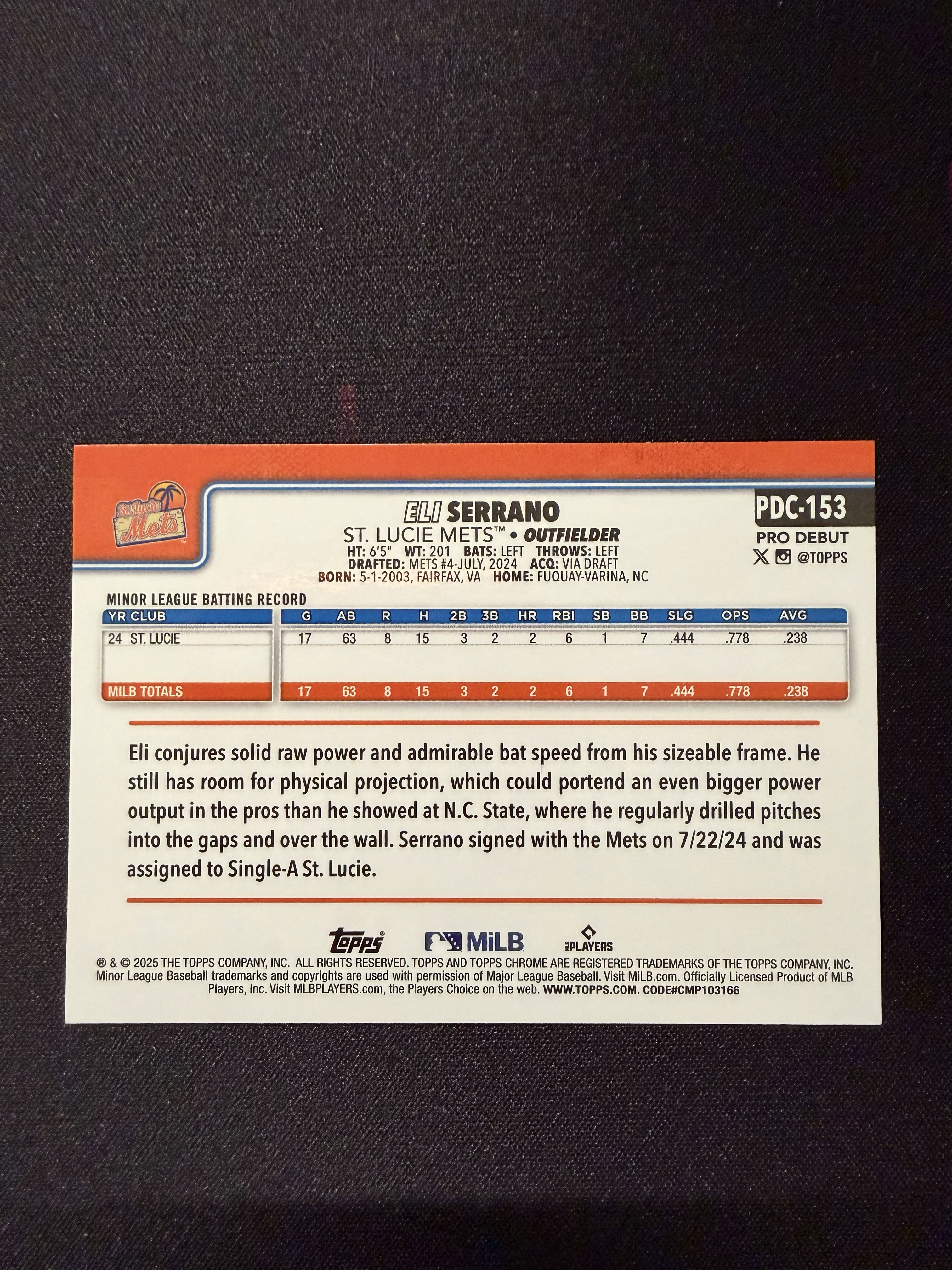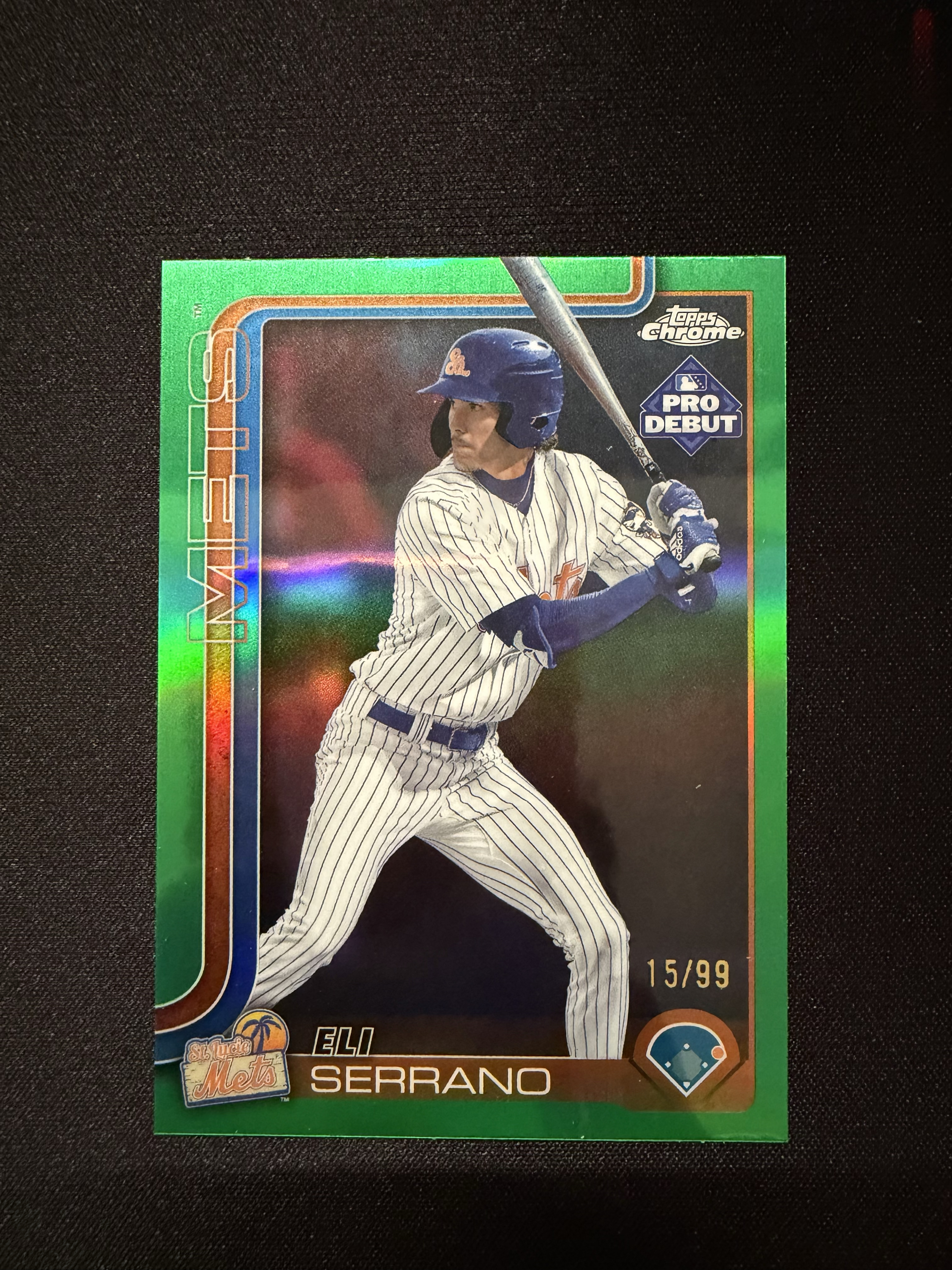 2025 Topps Pro Debut Eli Serrano RC 棒球 小联盟首秀系列 埃利 塞拉诺 纽约大都会 外野手 正绿折 Chrome材质 15/99编