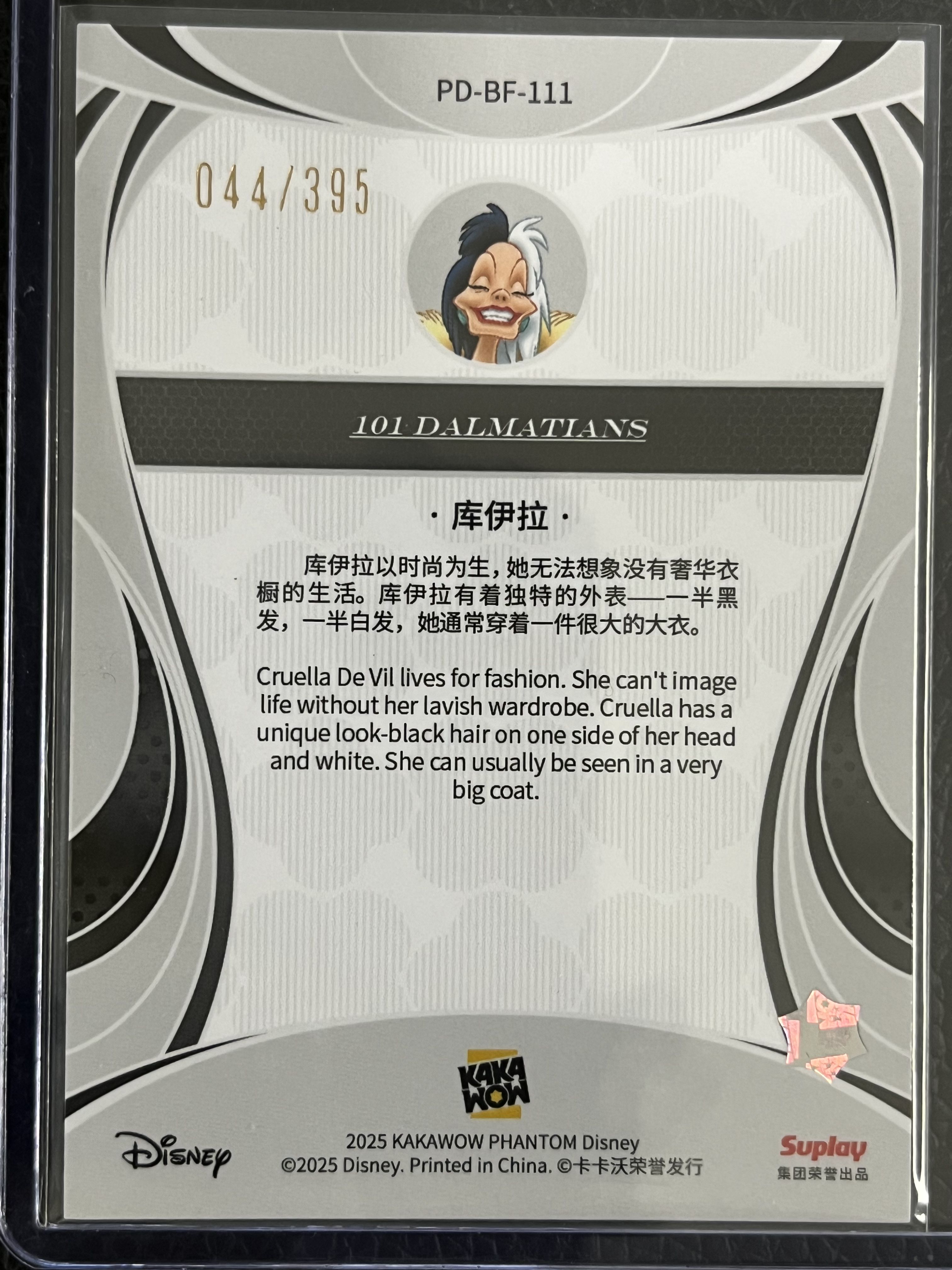 卡卡沃 2025 KAKAWOW PHANTOM 迪士尼系列收藏卡 基础卡-四叶草折 yuc(20B)44/395编 卡号111 库伊拉 Cruella De Vil