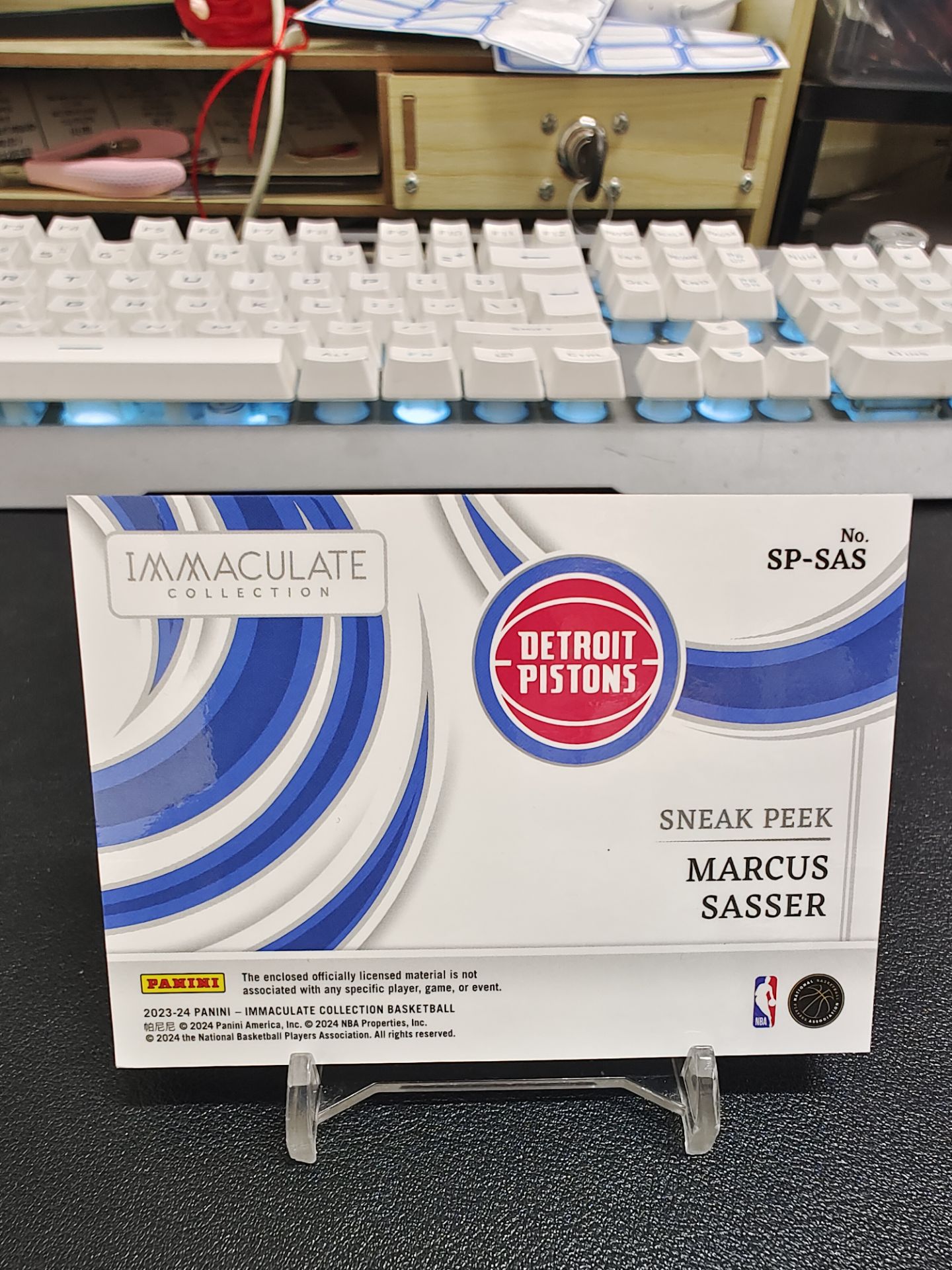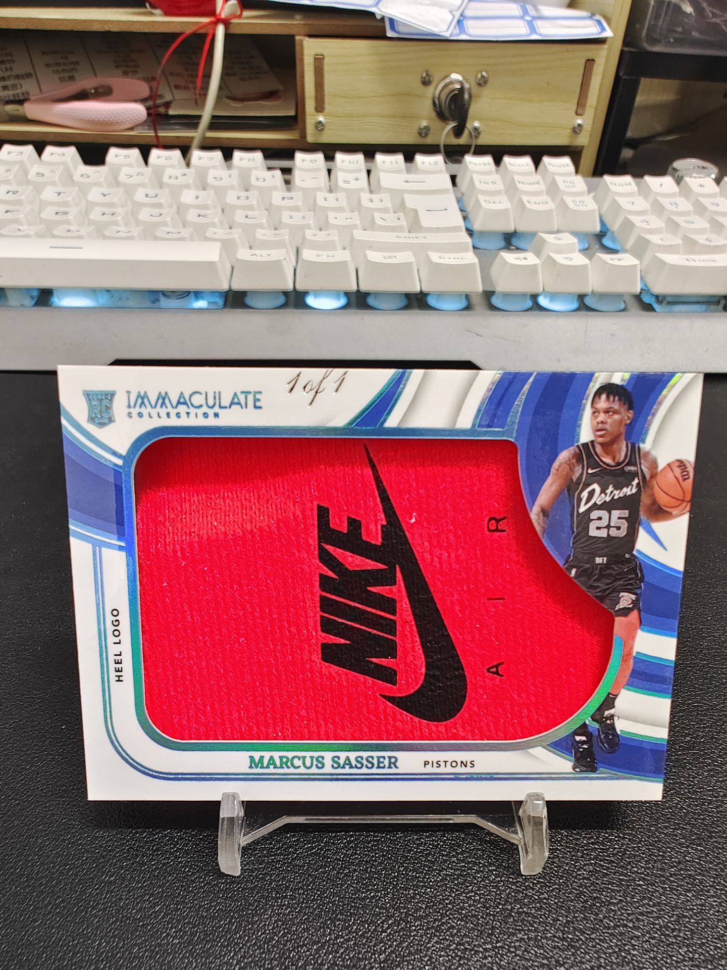 【浩行拍卖】23-24 panini imm Marcus Sasser 活塞 萨瑟 新秀RC 球鞋 实物 TAG Heel Logo Sneak Peek GU大窗球鞋商标 耐克钩子 湖水蓝平行 1/1编 瑕疵看图「蔓钧重上1」1120龘