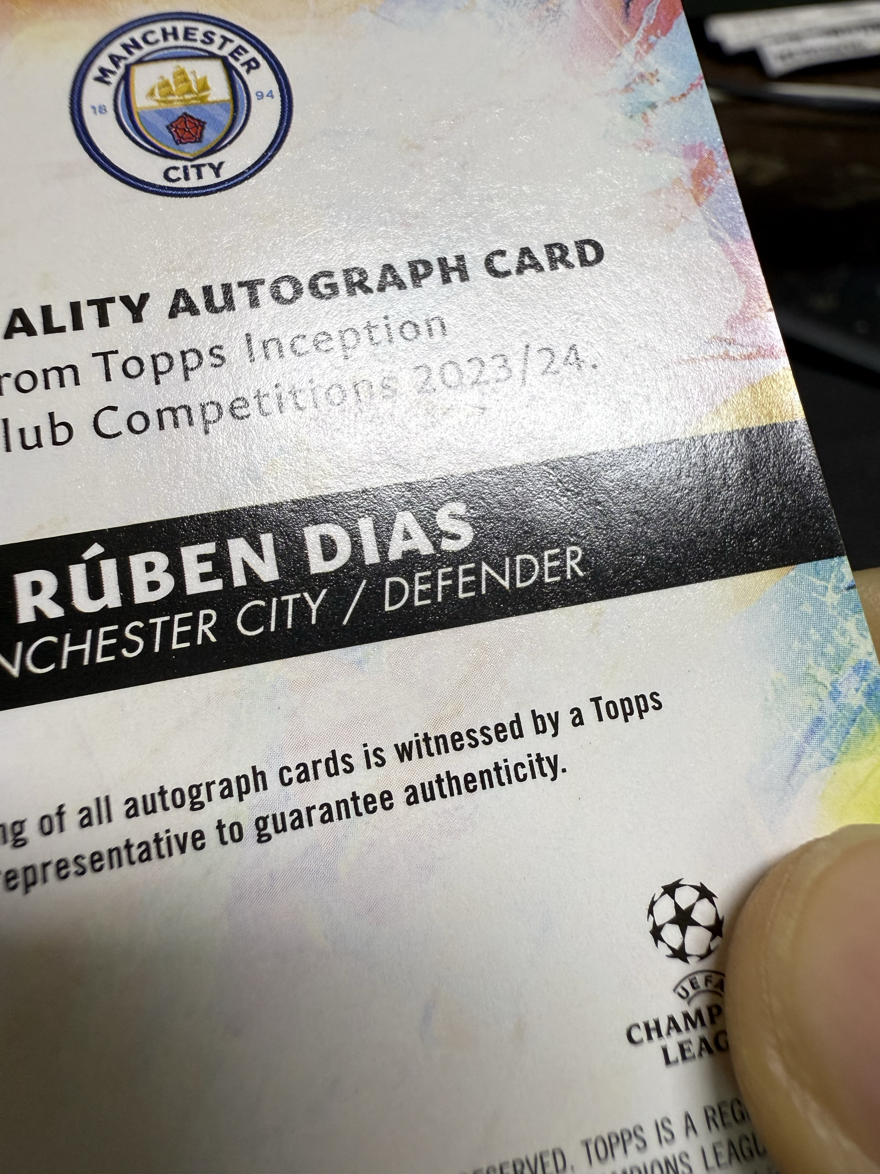 (怪兽拍卖) GSW-C41 2024 Topps Inception Ruben Dias 盗梦 曼城 鲁本 迪亚斯 签字 42/49编 微瑕如图34