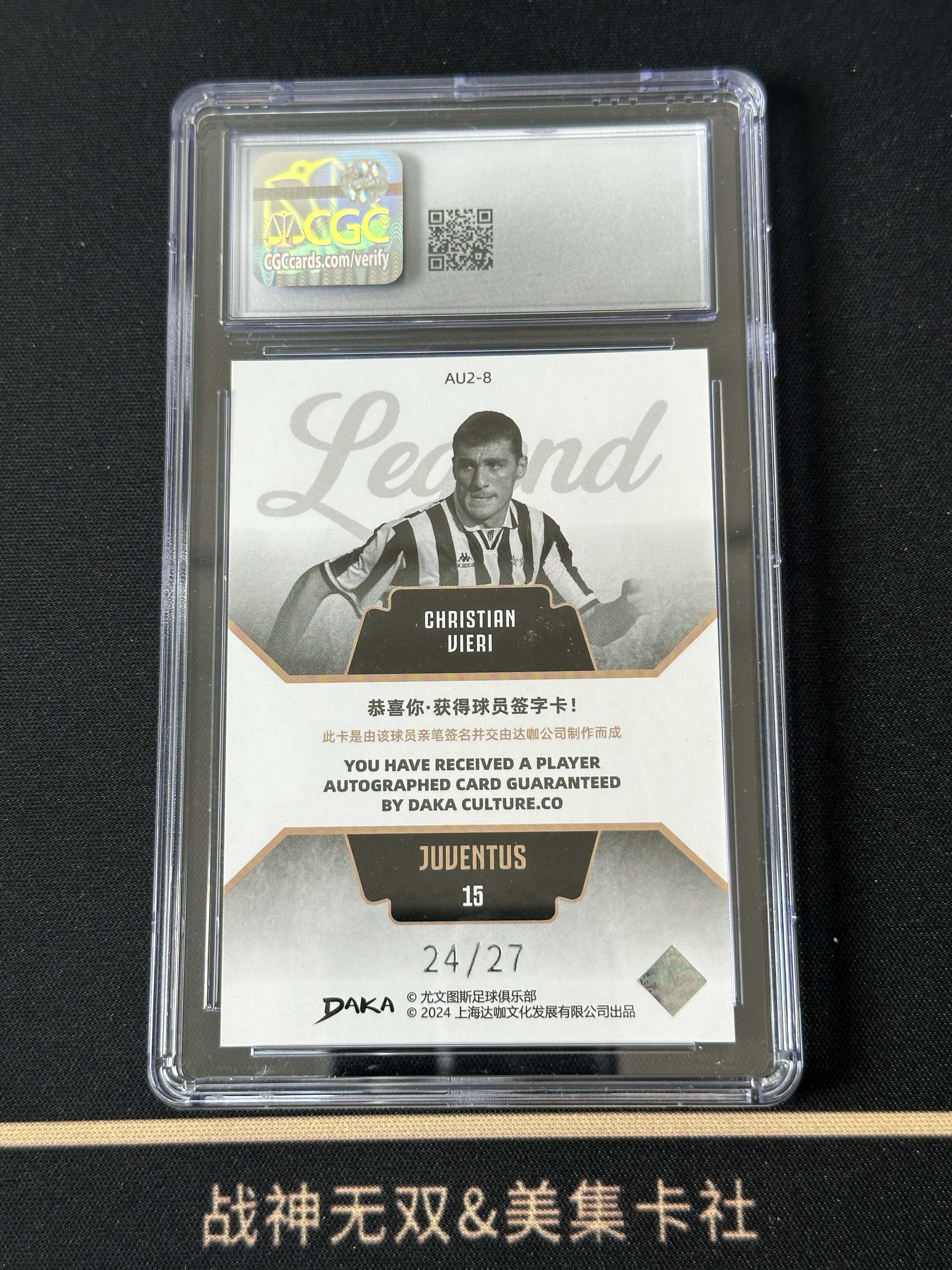 2024-25 Daka Juventus 尤文队盒 Christian Vieri 维埃里 维耶里 27编 Legend Auto 传奇 卡签 签字 CGC评级9分 战神无双 (#11.16035)