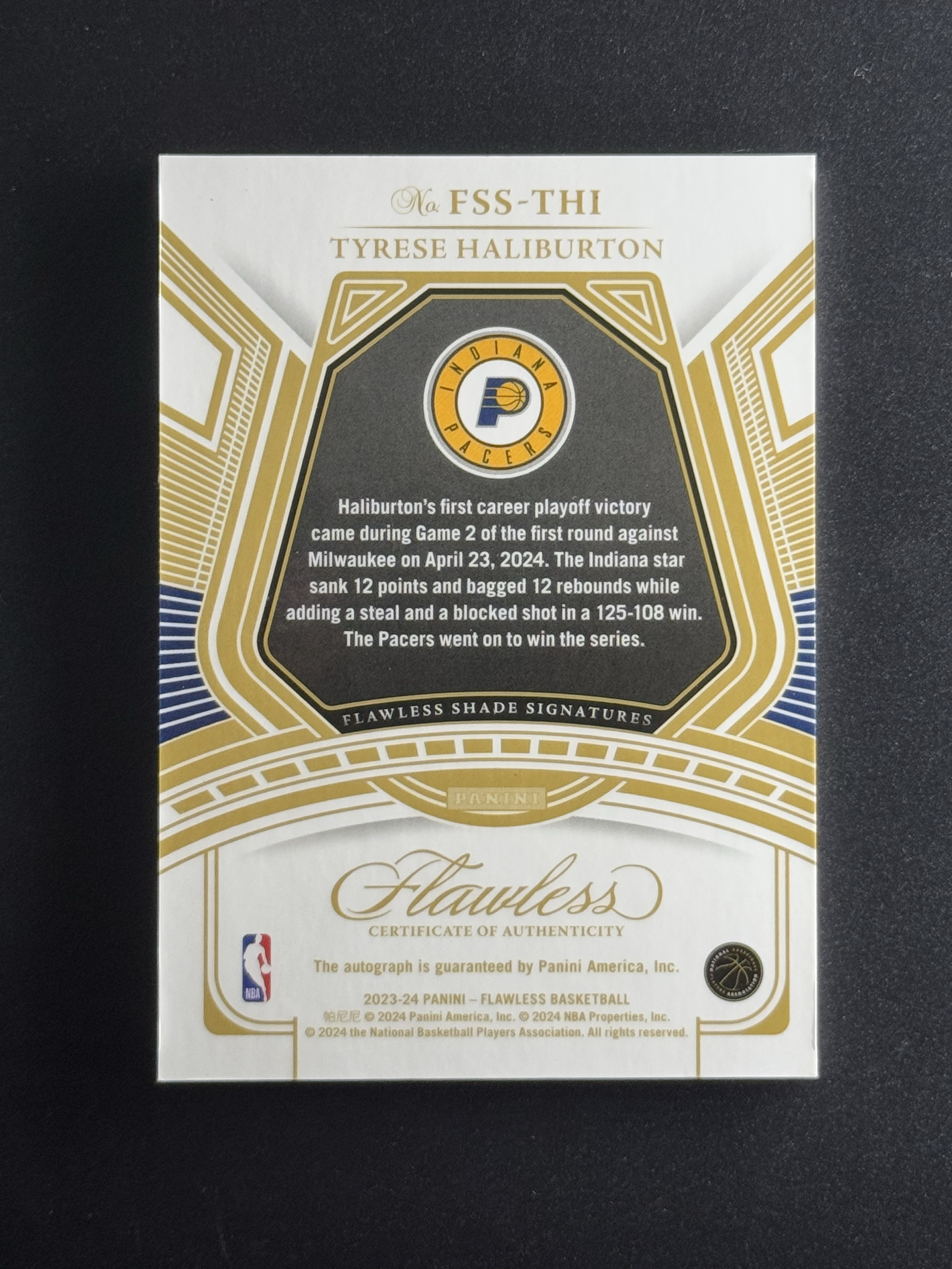 2023-24 Panini Flawless Tyrese Haliburton 【小花猪代卖】手提 哈利伯顿 哈里伯顿 签字 卡签 6/8编 先行独占 蓝平行 步行者(壹