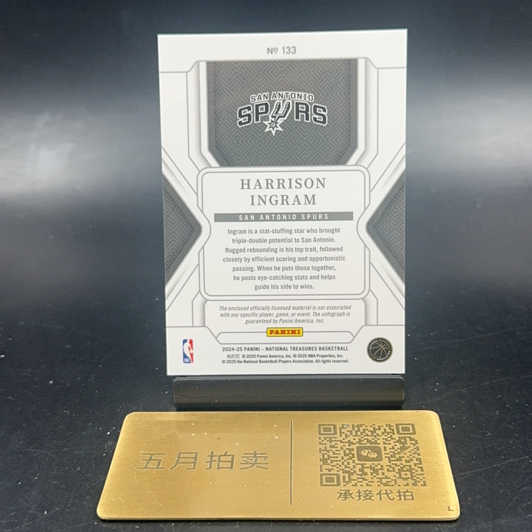 2024-25 Panini National Treasures Harrison Ingram RC 【五月拍卖顺丰空运】国宝新秀rpa 英格拉姆49编 大窗球衣物料patch签字卡签 微瑕寿光4