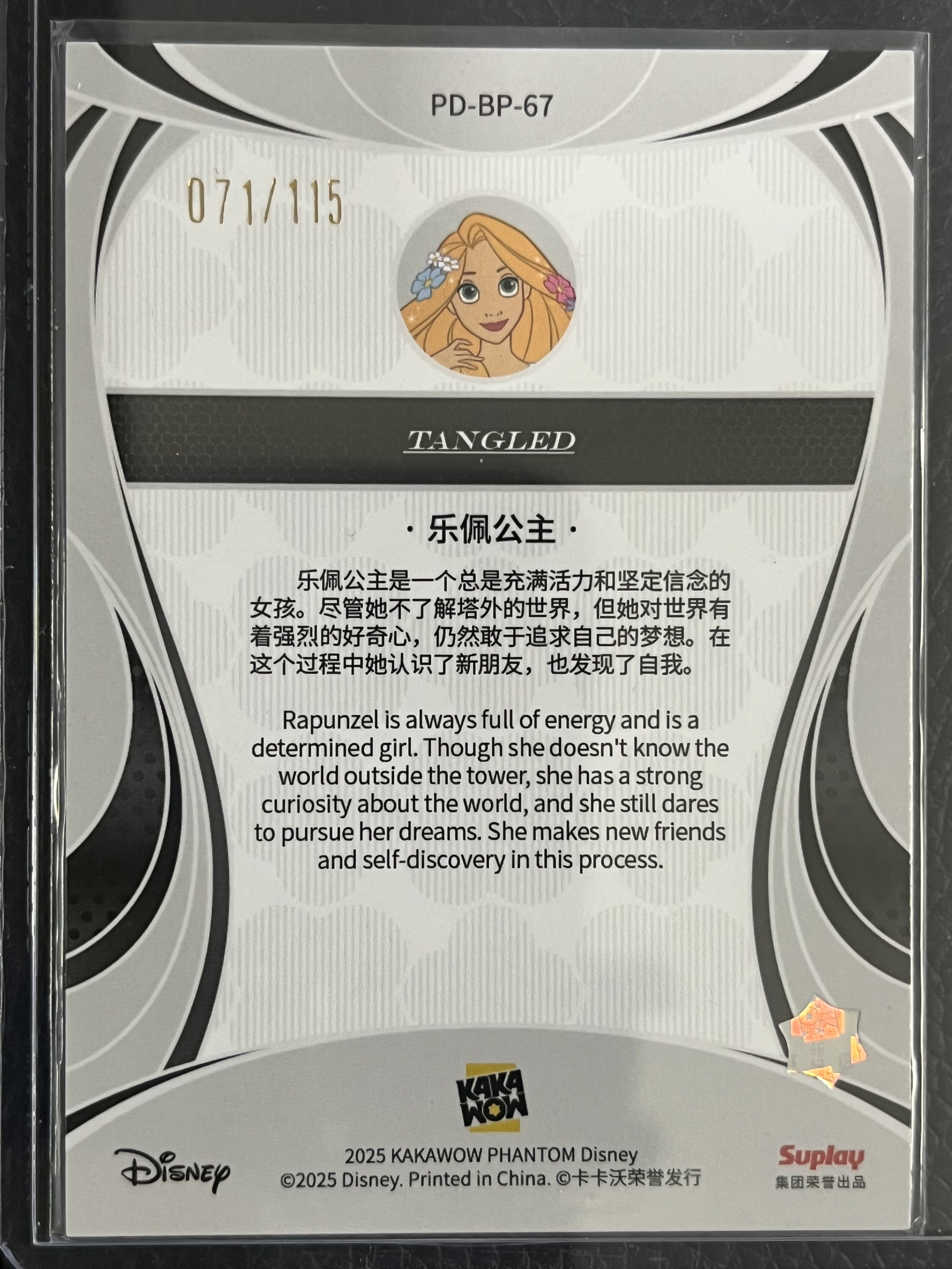 卡卡沃 2025 KAKAWOW PHANTOM 迪士尼系列收藏卡 基础卡-紫 臭JD(20A)71/115编 卡号67 乐佩公主 Rapunzel