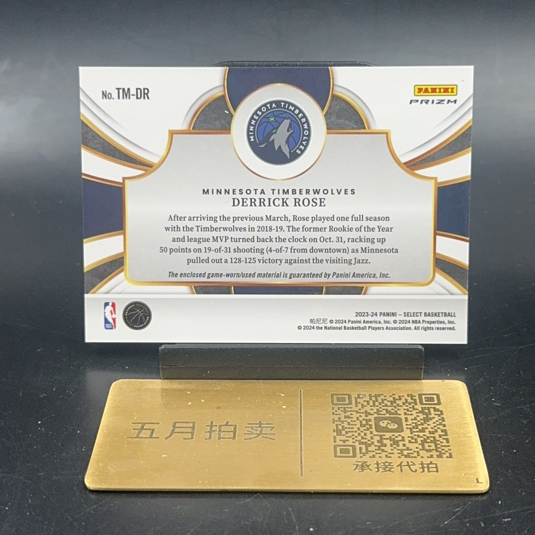 2023-24 Panini Select Derrick Rose 【五月拍卖 顺丰空运】德里克罗斯 折射 球衣物料 gu亲穿 微瑕如图 寿光17
