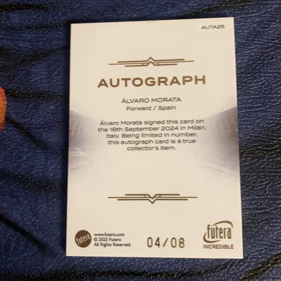 2025 Futera lncredible Alvaro Morata 阿尔瓦罗 莫拉塔 西班牙 福特拉 金框 卡签 签字 04/08编 收藏必备(小皮
