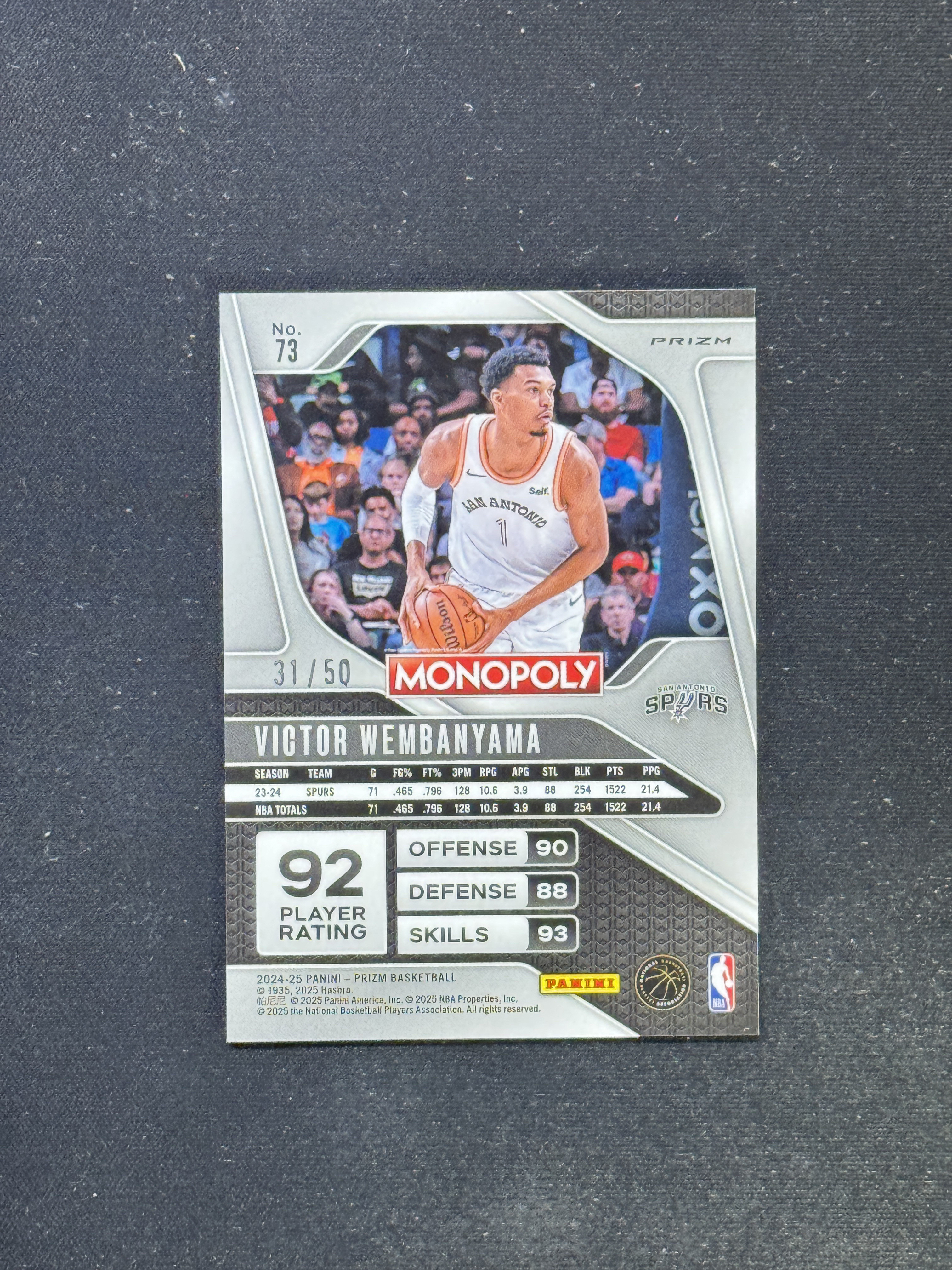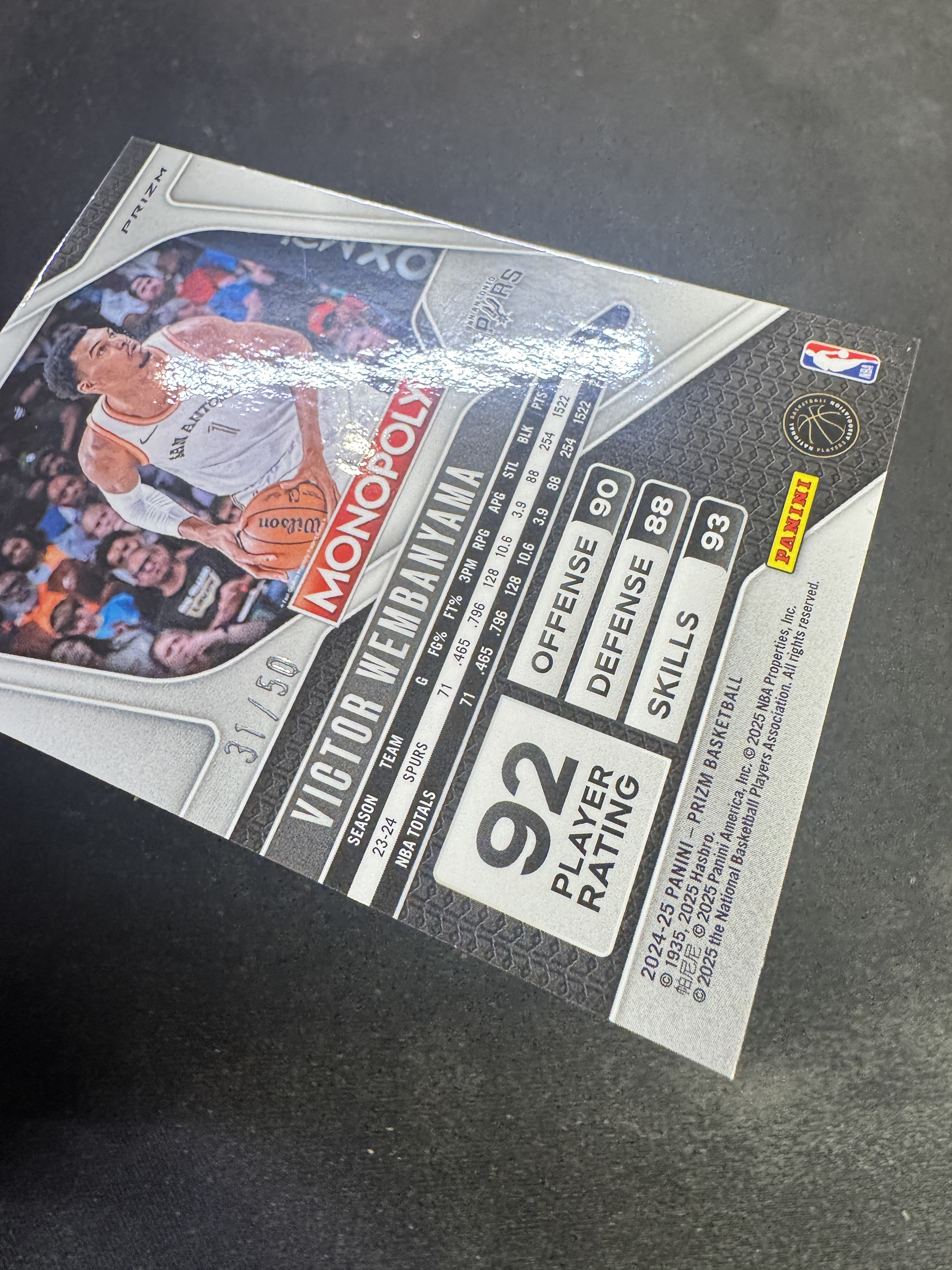 2024-25 Panini Prizm Victor Wembanyama 【三三拍卖】大富翁PZ 维克托 文班亚马 马刺 百万富翁折 紫Shimmer折 紫金钱折 31/50编 印刷线如图 退