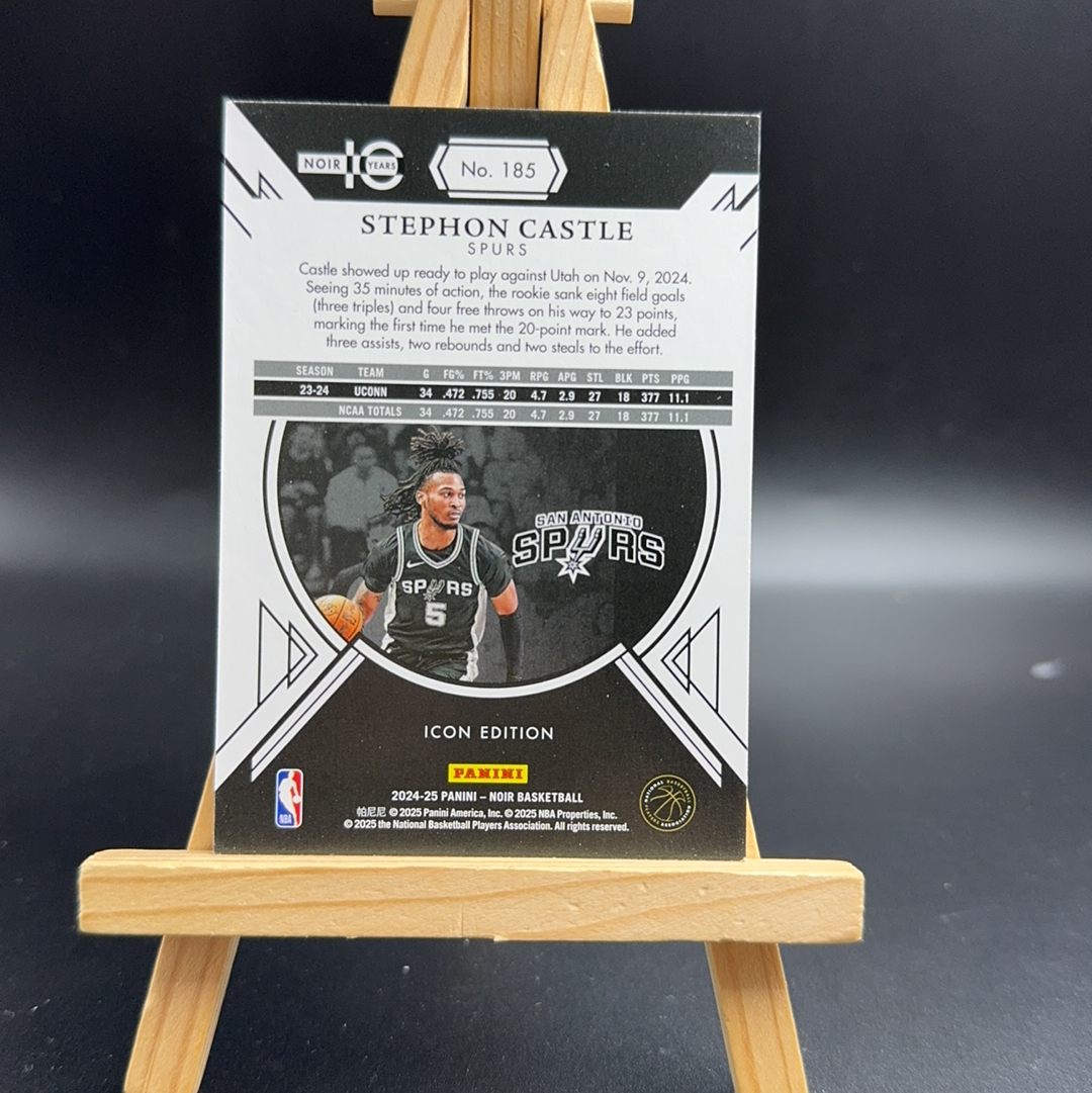 2024-25 Panini Noir Stephon Castle RC 【YT拍卖】斯蒂芬 卡斯尔 新秀 Rc 马刺队 /49编 厚卡 折射 闪版 卡品如图 ~葛