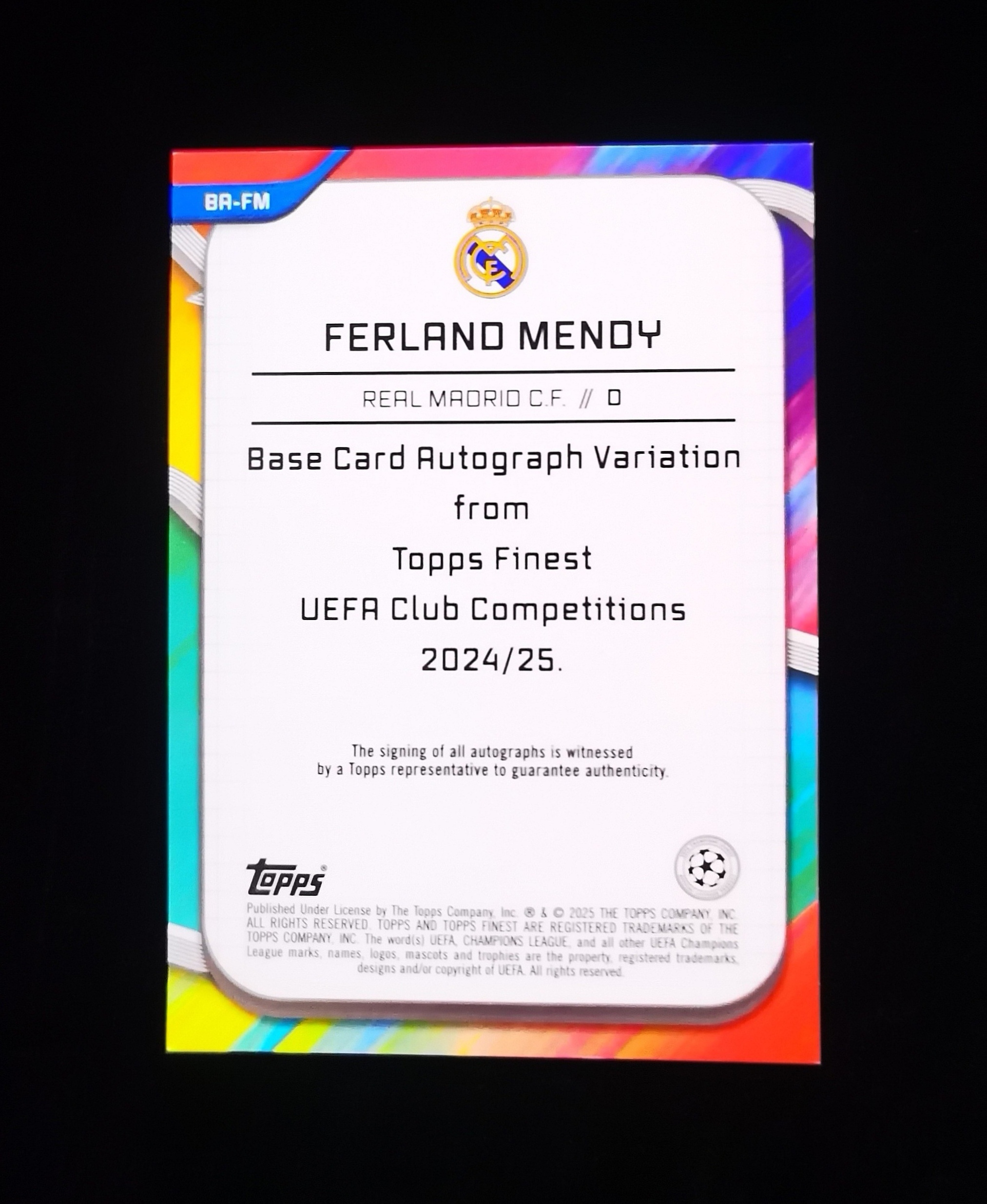 2024-25 Topps Finest Ferland Mendy 欧冠 皇马 皇家马德里 法国 弗兰 门迪 164/199编 签字 紫折签 完美签 紫shimmer折 铁血硬汉 防守核心 欧冠冠军 实卡精美 专收必备【煜1】