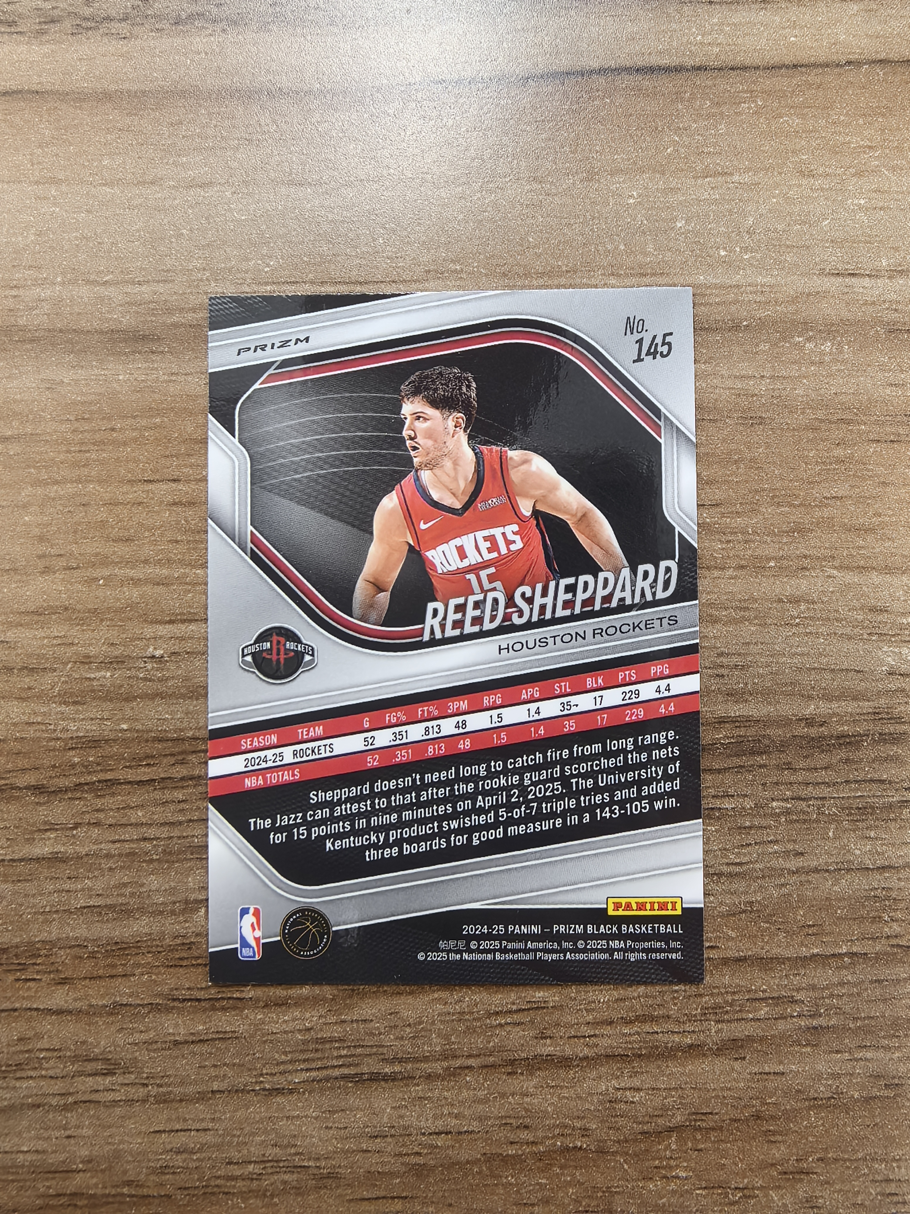 2024-25 Panini Prizm Black Reed Sheppard RC 火箭 里德谢泼德 新秀 银折 折射 微瑕 实卡精美 卡品如图 收藏必入 大帅