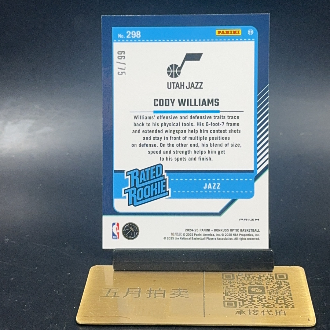 2024-25 Panini Donruss Cody Williams RC 【五月拍卖 顺丰空运】杜蕾斯 optic 科迪 威廉姆斯 75编 电力折 折射 卡品如图 寿光80
