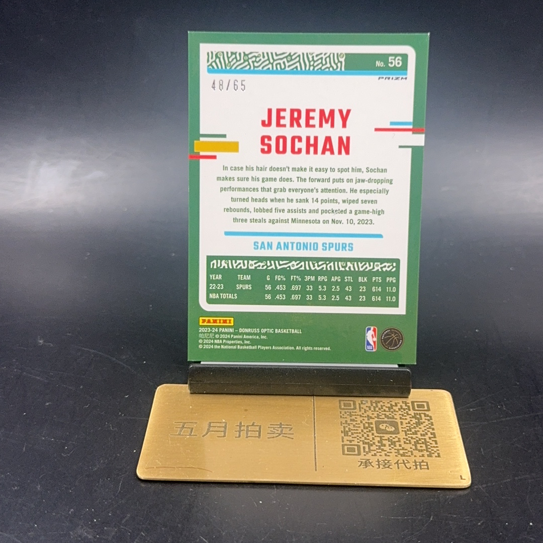 2023-24 Panini Donruss Jeremy Sochan 【五月拍卖 顺丰空运】杜蕾斯 optic 索汉 绿圈圈折 折射 65编 卡品如图 寿光82