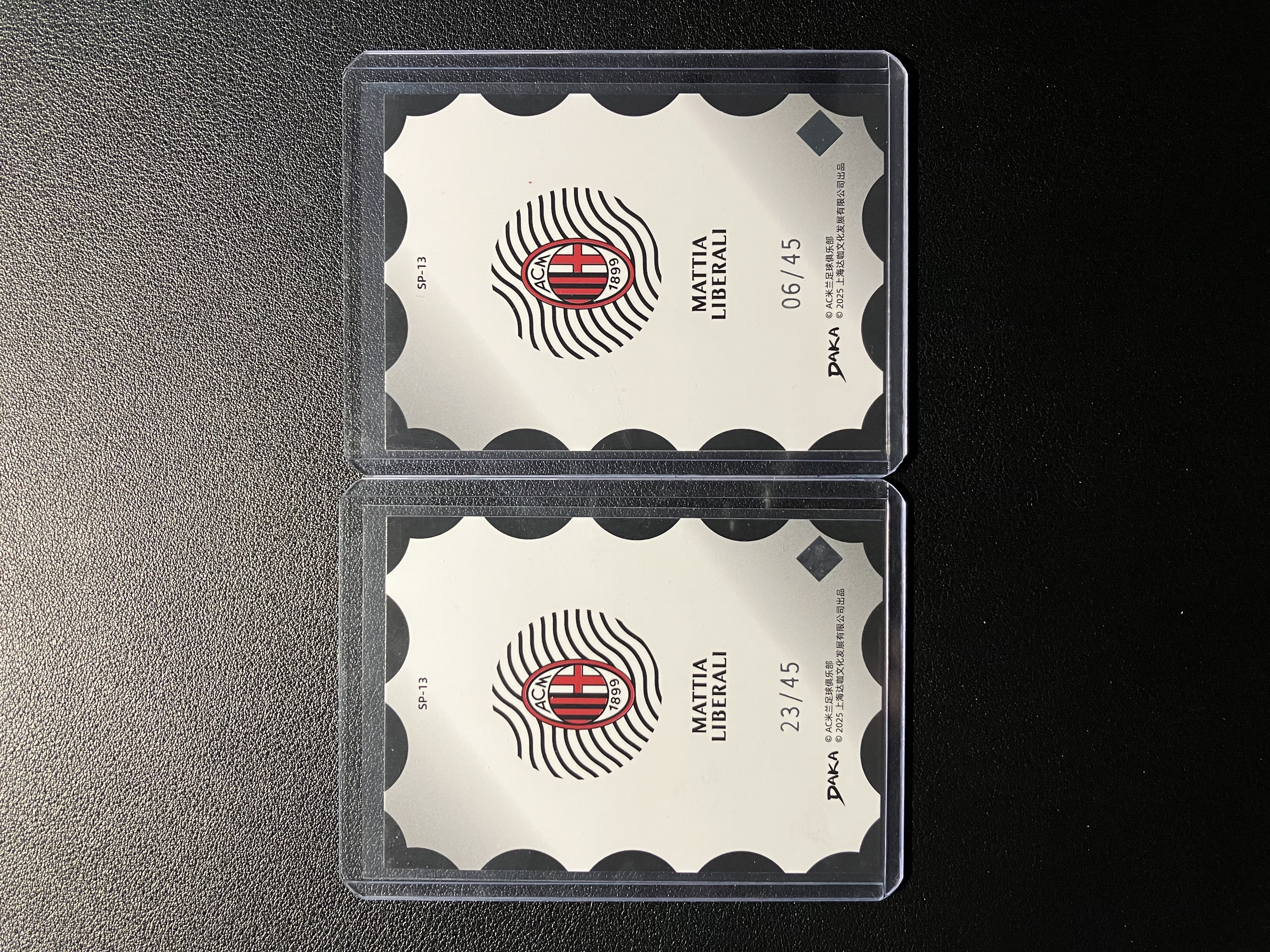 2025 DAKA AC Milan One&Two Mattia Liberali RC AC米兰队盒 马蒂亚-利贝拉利 45编 银折*2 米兰邮章 意大利 新秀前锋 Lot不保卡品 A003