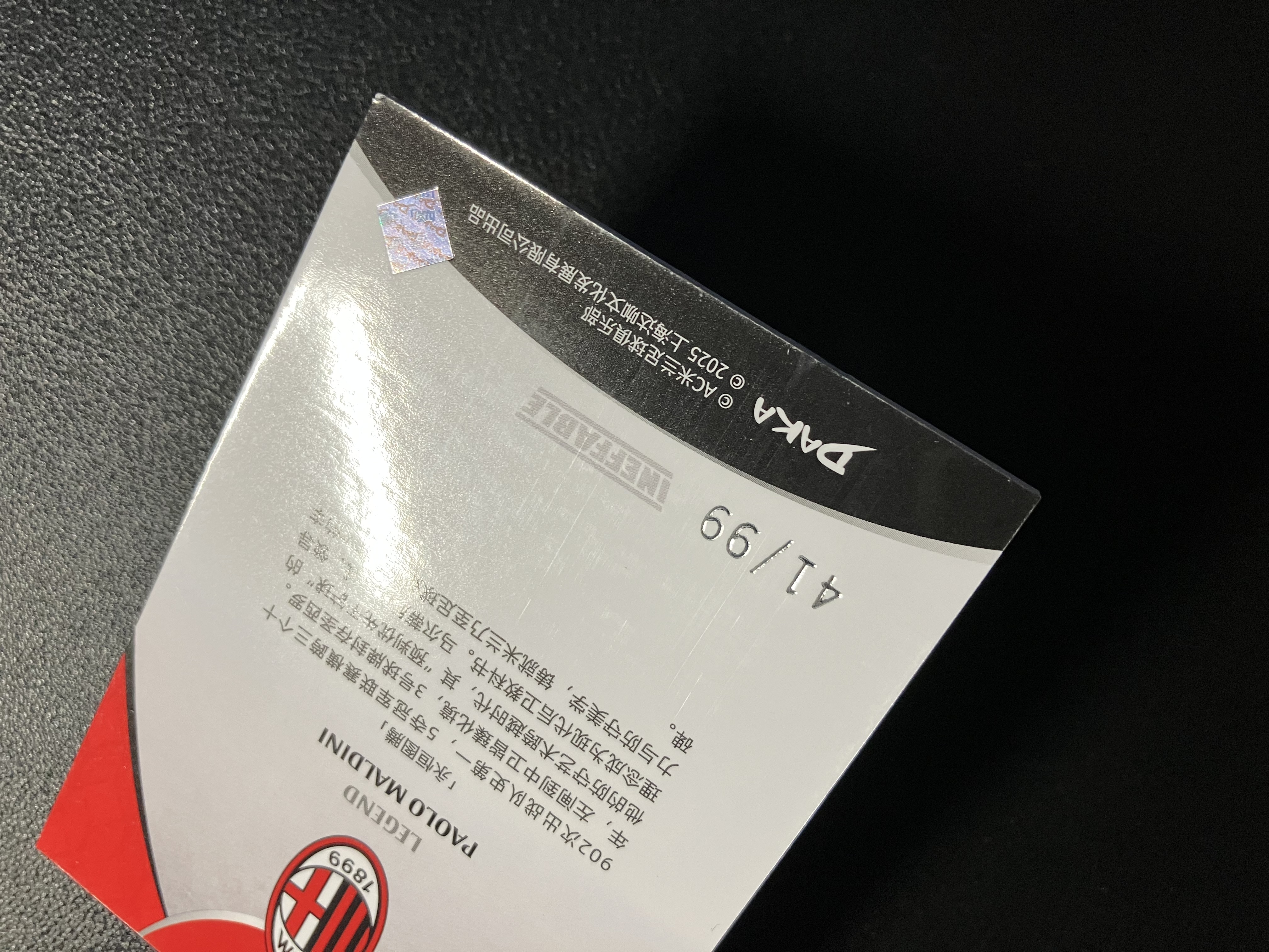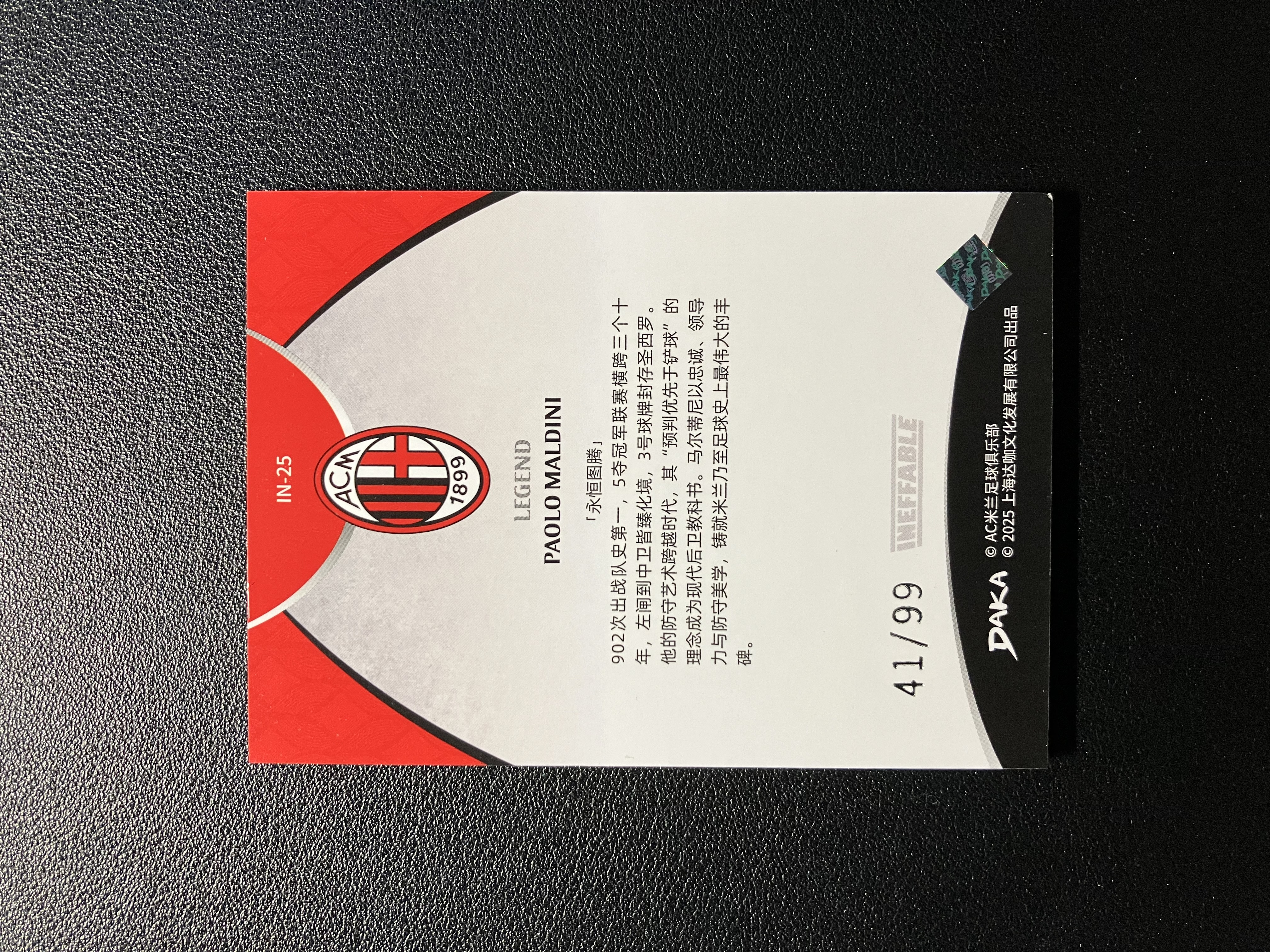 2025 DAKA AC Milan One&Two Paolo Maldini AC米兰队盒 保罗-马尔蒂尼 41/99编 厚卡 传奇Base 意大利 马队 传奇名宿 卡品如图 A003