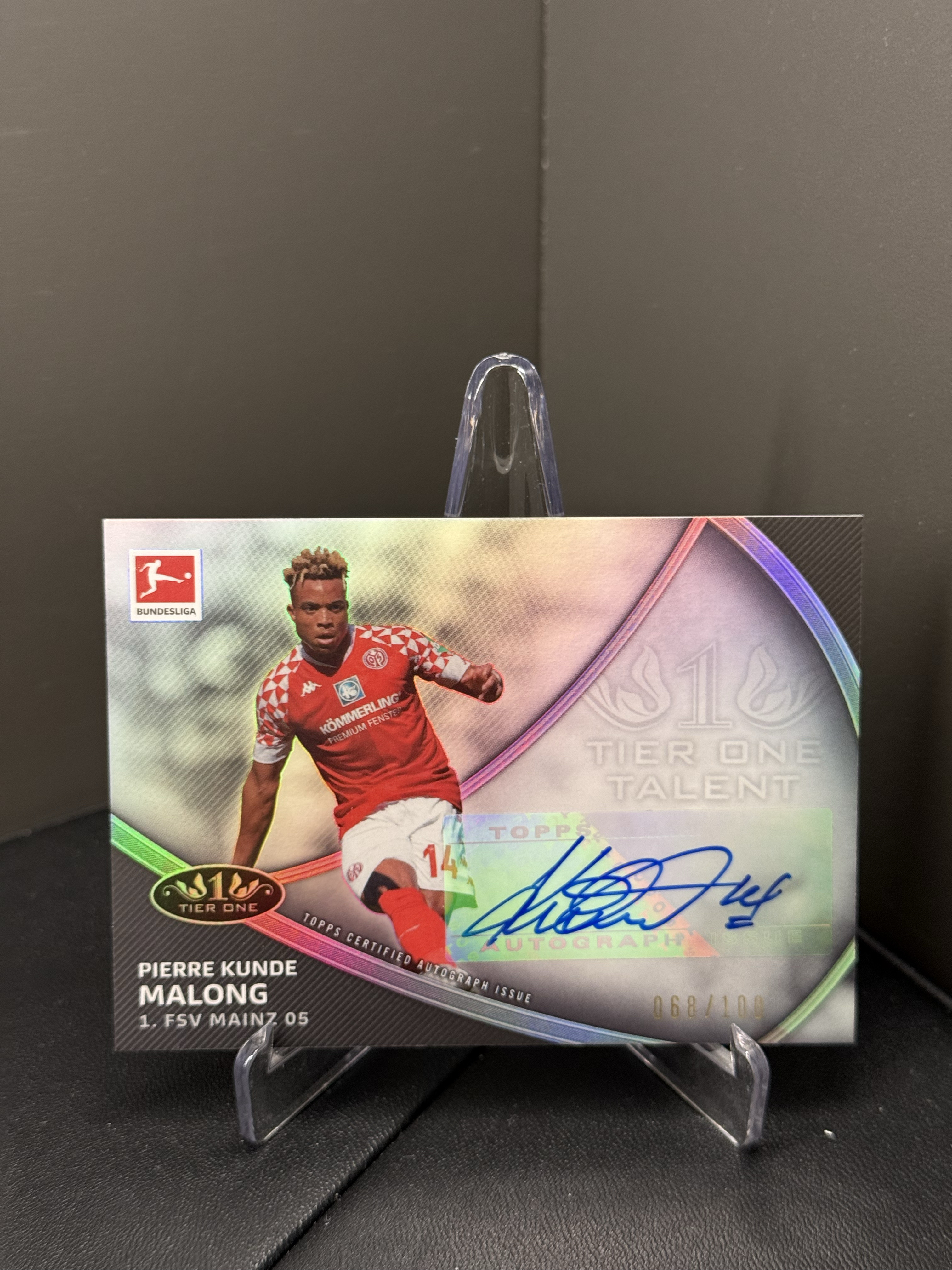 2020-21 Topps 德甲 Tier One 美因茨 折射 横版 签字 100编 皮埃尔 昆德 马隆 Pierre Kunde Malong 瑕疵如图 收藏必备 代拍私信