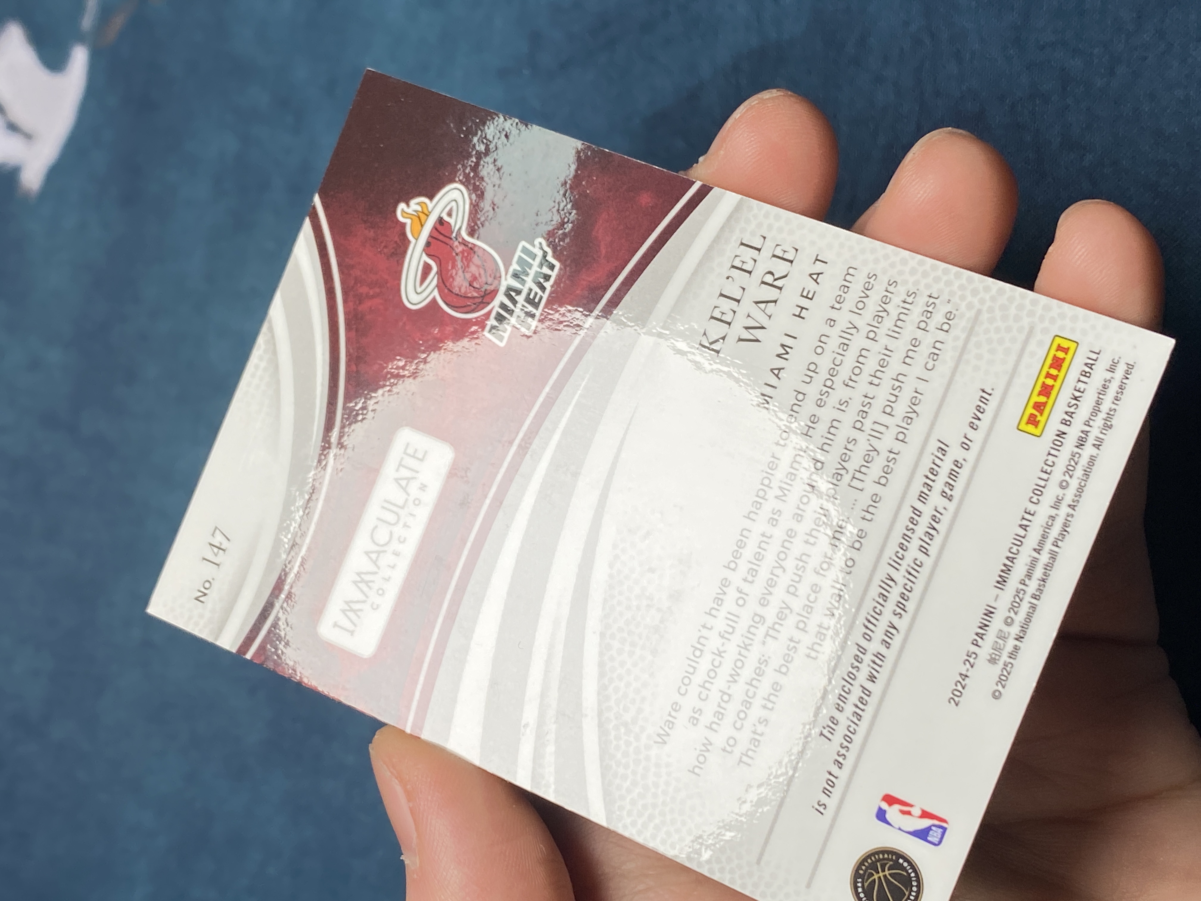 2024-25 Panini Immaculate Kel'el Ware RC IMM 热火 新秀RC 凯莱尔 韦尔 49编 蓝平行 双色暴力patch切割 注意描述 HL