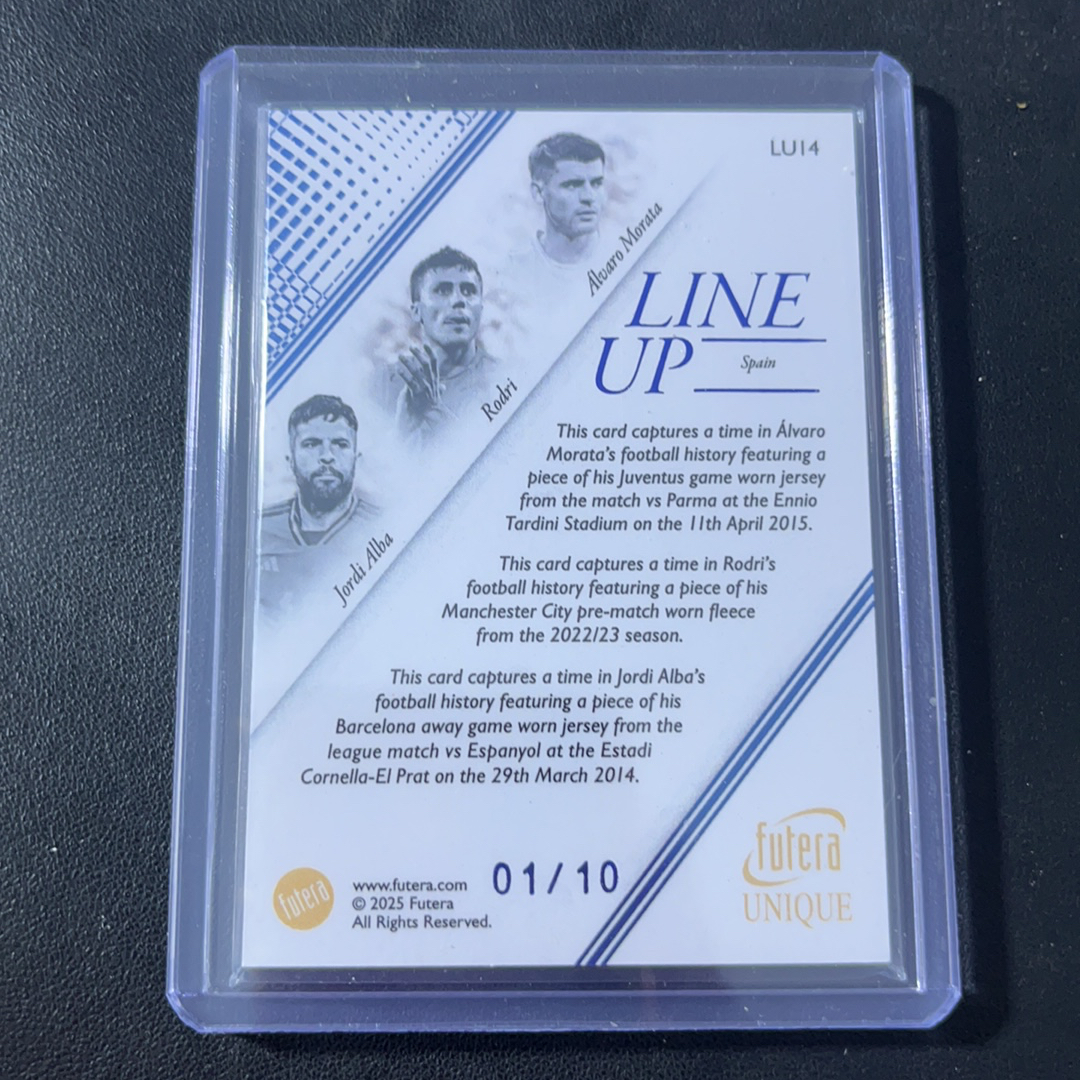 2025 Futera Unique . 【小二哥拆卡】2025 福特拉 Futera 足球 三窗物料 01/10编 西班牙 Jordi Alba/Rodri/Aluaro Morata 默认瑕疵 猫