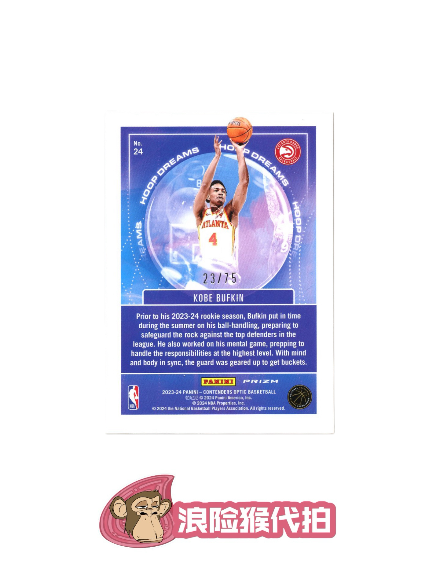 【浪险猴🐒代拍】2023-24 帕尼尼 Contenders optic 球票OP Kobe Bufkin 科比 巴夫金 RC 新秀 蓝碎冰折 75编 折射 卡品如图 黎明