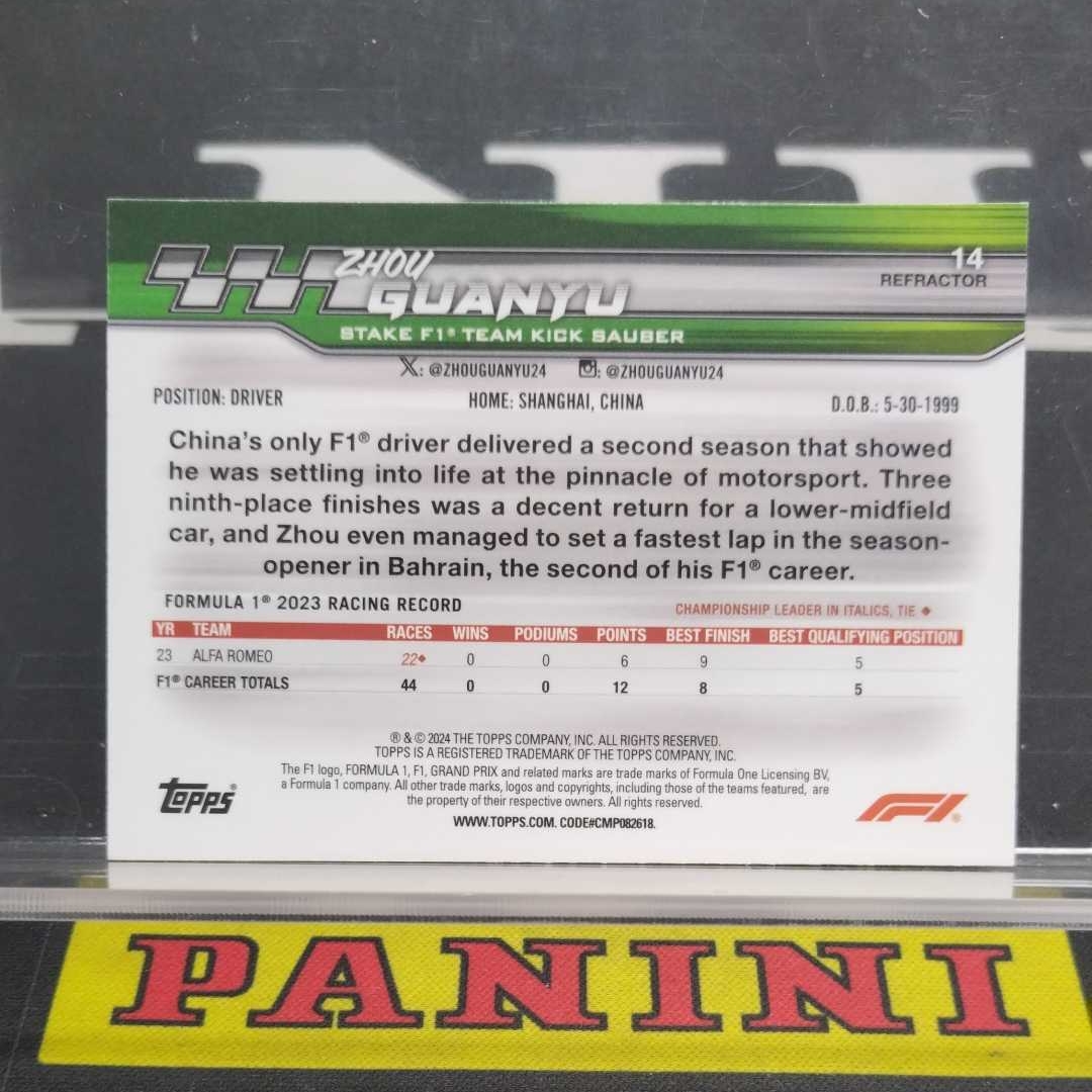 2024 Topps Press Pass Guanyu Zhou 【伯纳乌代卖】F1 围场通行证 周冠宇 粉折 特卡 横版 索伯车队 中国 收藏必备 微瑕(我爱小樱)