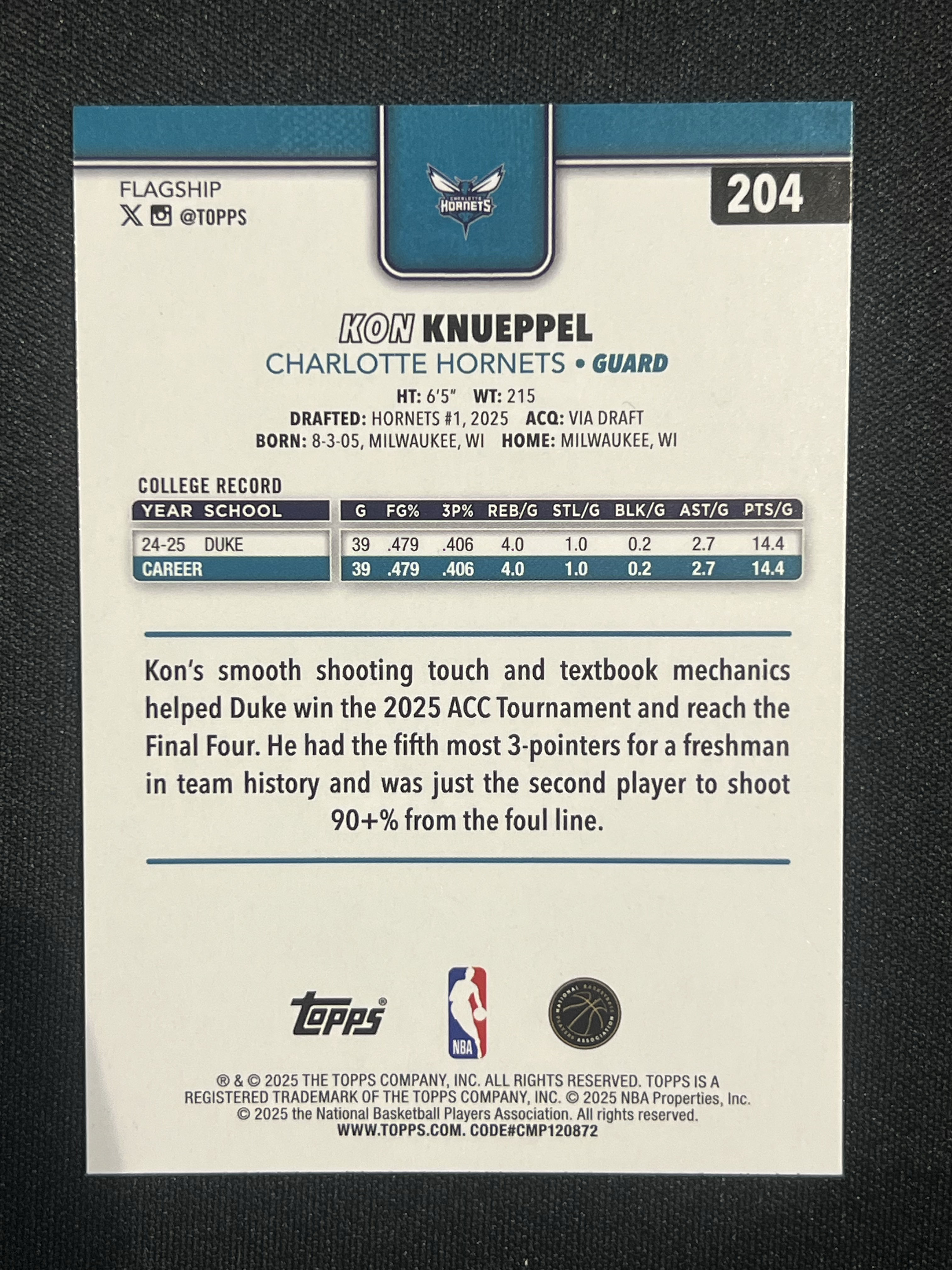 【卡卡星拍卖】2025 Topps Kon Knueppel RC topps旗舰 康 克内佩尔 新秀  大热 base 卡品如图 李pp