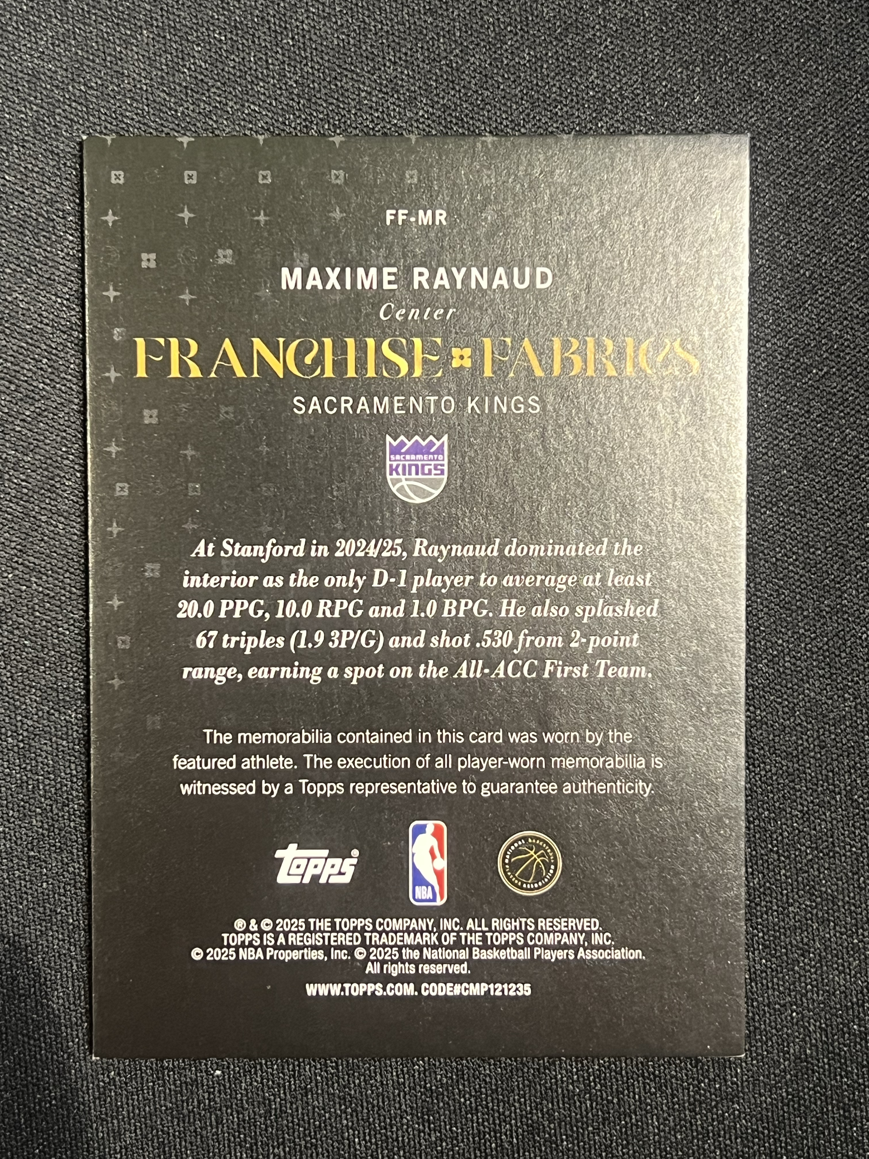 【卡卡星拍卖】2025-26 Topps Flagship Maxime Raynaud RC 马克西姆 雷诺德 新秀 小窗物料 pacth 国王 卡品如图 李pp