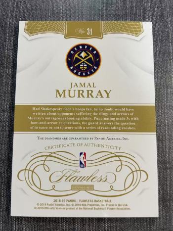 拍卖须知:1、卡片截标后请尽快付款,超5日未付款的直接向卡淘进行投诉。如需累计请先给提货码,确认收货方可累计,最长累计1个月,超过1个月卡片出现卡品问题或者卡片丢失概不负责;2、运费:默认京东快递,因为月结客户有量的要求,一律不发其他快递或顺丰到付,请理解,超重另算。如遇快递丢失或暴力破损本店只负责协助解决,不负责赔偿; 3、卡品说明: 卡品如图为一般通行品,有睱疵的会另外说明。国宝、IMM 、Noir等厚的卡普遍会有白边白角属于通行品。Prizm、 Select、 Optic等折射、镜面卡片有小划痕、小印记或非人为卡片制作印刷的问题属于正常通行品。要保证评级金标的请直接购买评级卡,强迫症、品相控的卡迷谨慎出价 。为了卡片安全,总金额1000以上建议保价,站内信留言即可。不接受任何转让转拍合并发货的卡,买家若转让可将卡发回后自行处理。