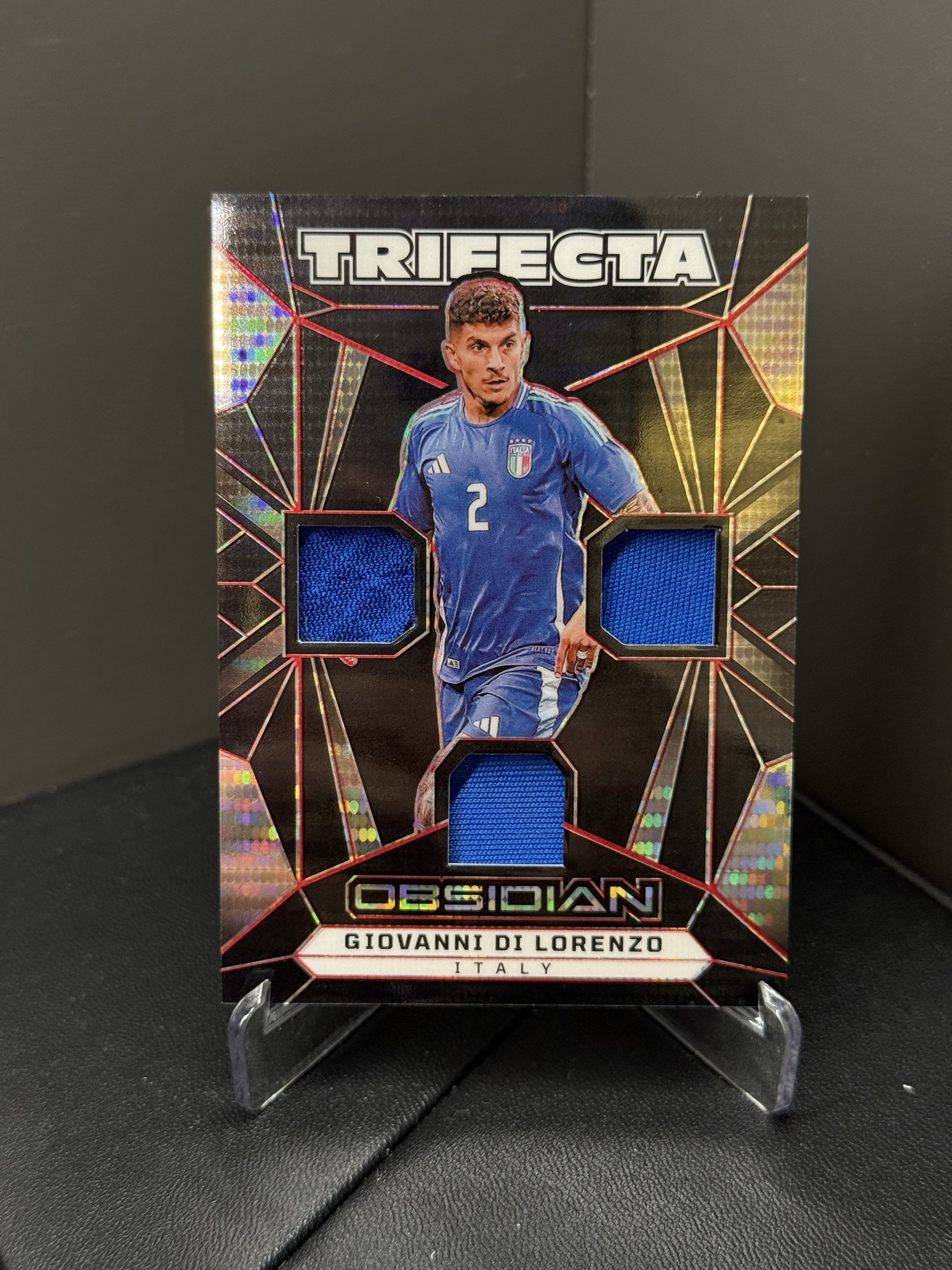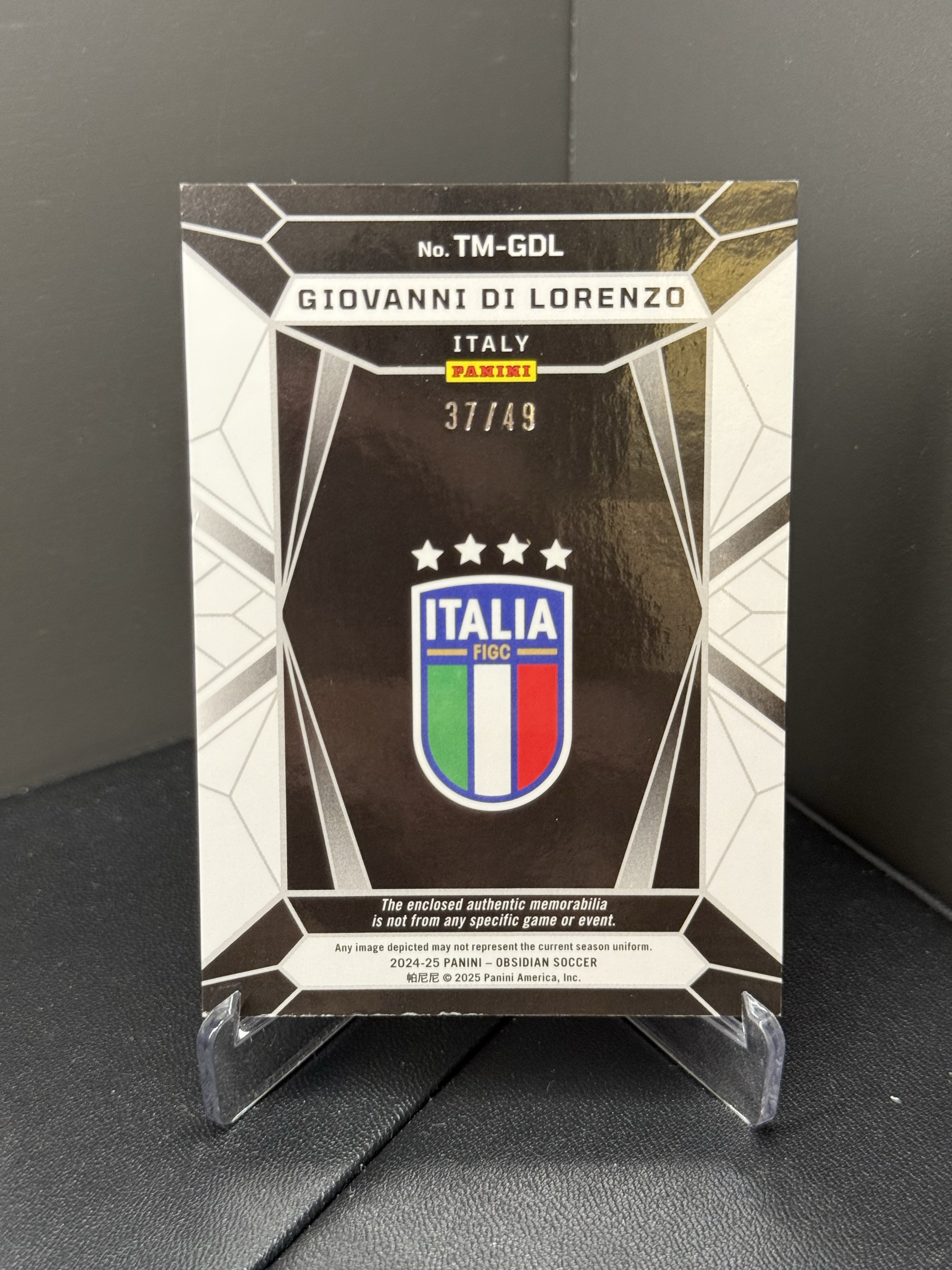 2024-25 Panini Obsidian Giovanni Di Lorenzo 乔瓦尼 迪洛伦佐 49编 低编 黑曜石 三窗球衣物料 暴力切割 意大利 瑕疵如图 签字 收藏必备 代拍私信