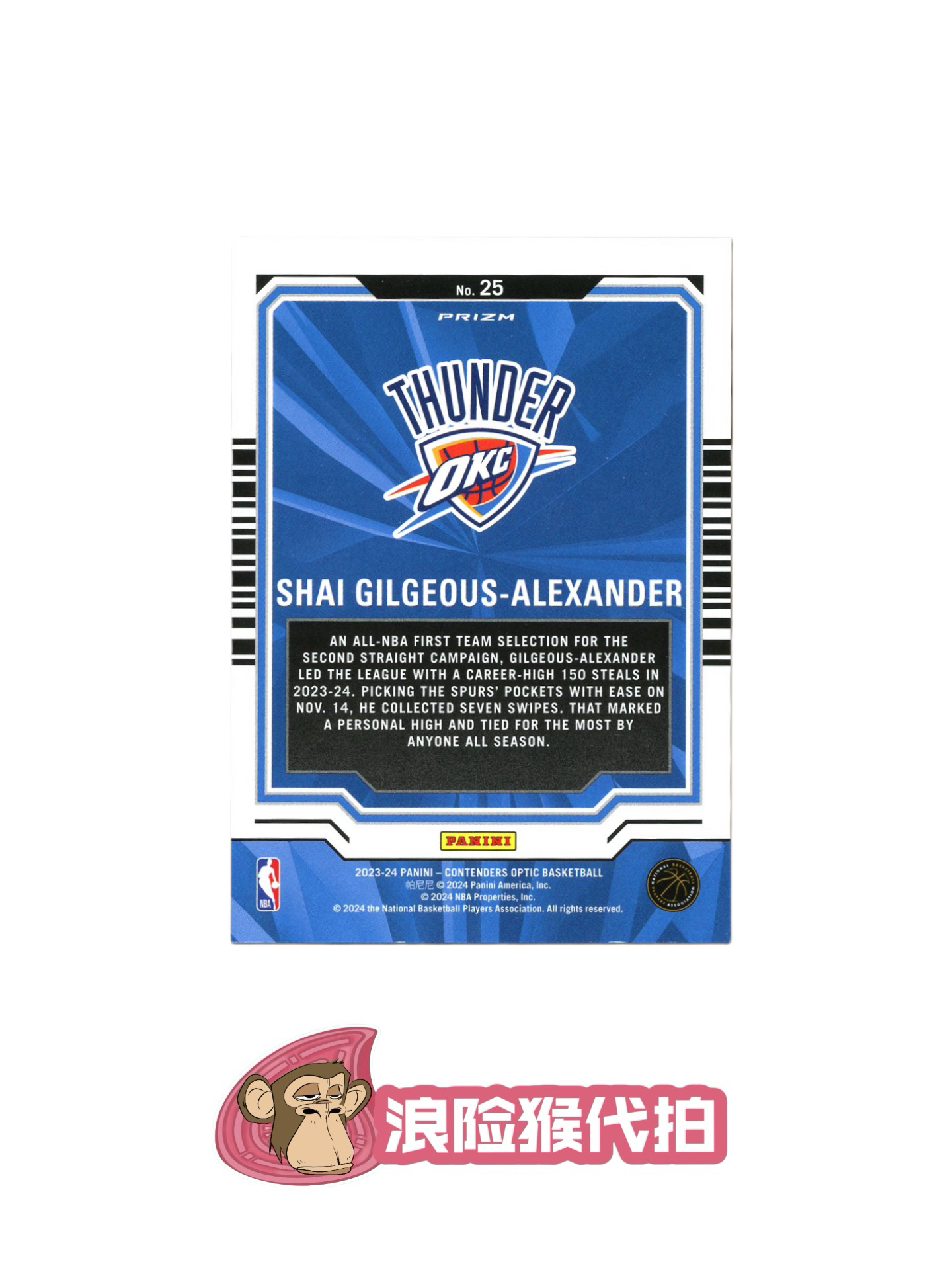 【浪险猴🐒代拍】2023-24 Panini Contenders Optic Shai Gilgeous-Alexander SGA 雷霆 单场7抢断 数据 银折 卡品如图 黎明