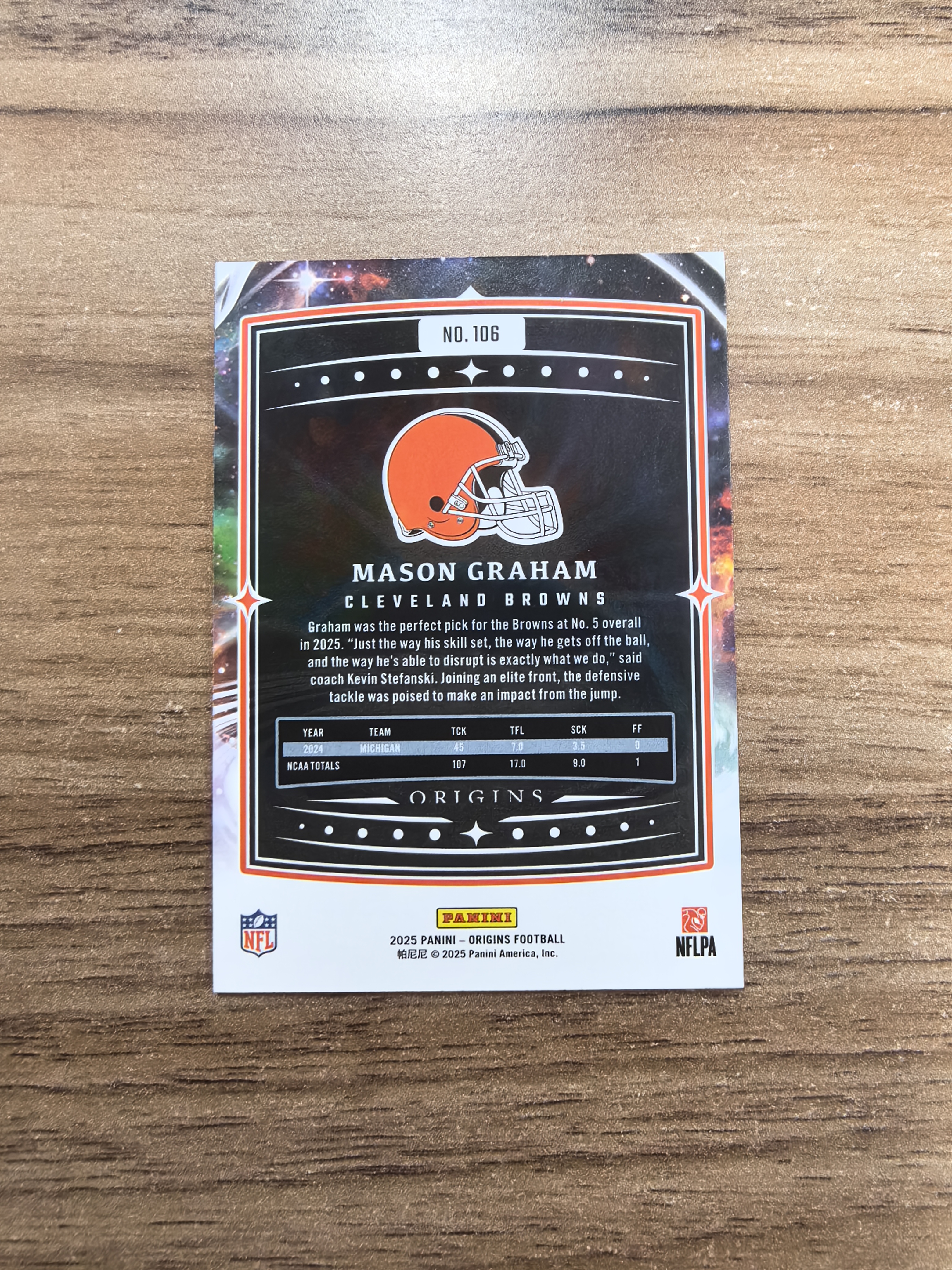 2025 Panini Origins Mason Graham RC 起源 橄榄球 梅森格雷厄姆 新秀 12/75编 实卡精美 卡品如图 收藏必入 流浪