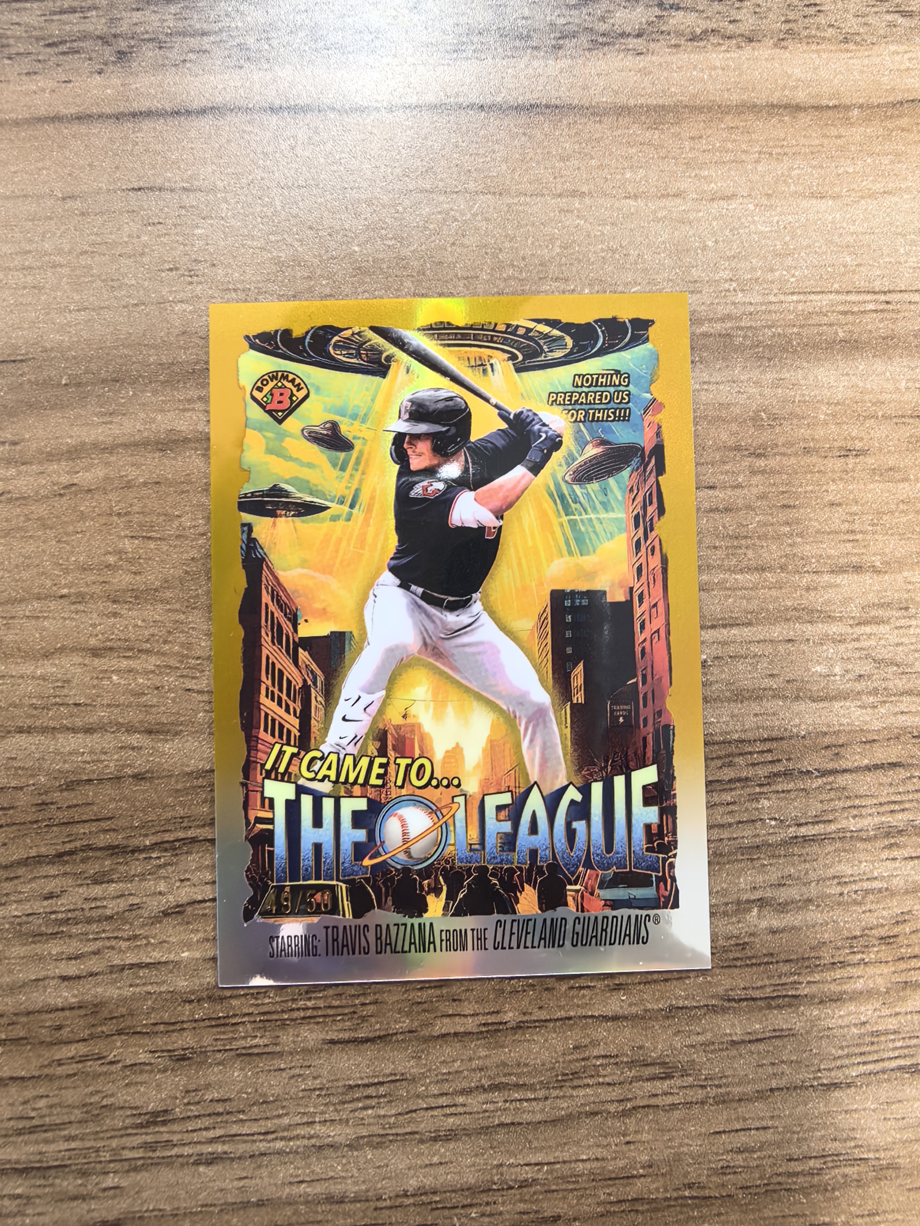 2025 Topps Chrome TRAVIS BAZZANA 棒球 克利夫兰守护者队 状元 特拉维斯巴扎呐 49/50编 特卡 折射 微瑕 实卡精美 卡品如图 流浪