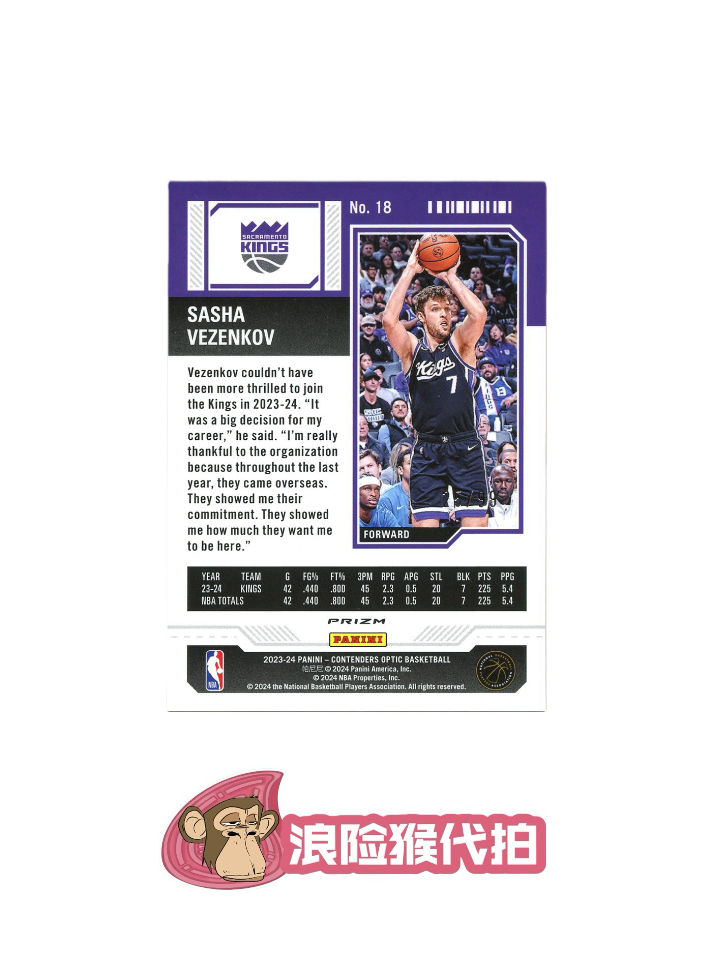 【浪险猴🐒代拍】2023-24 Panini Contenders sasha vezenkov RC 球票 新秀 维琴科夫 篮折 折射 99编 卡品如图 黎明