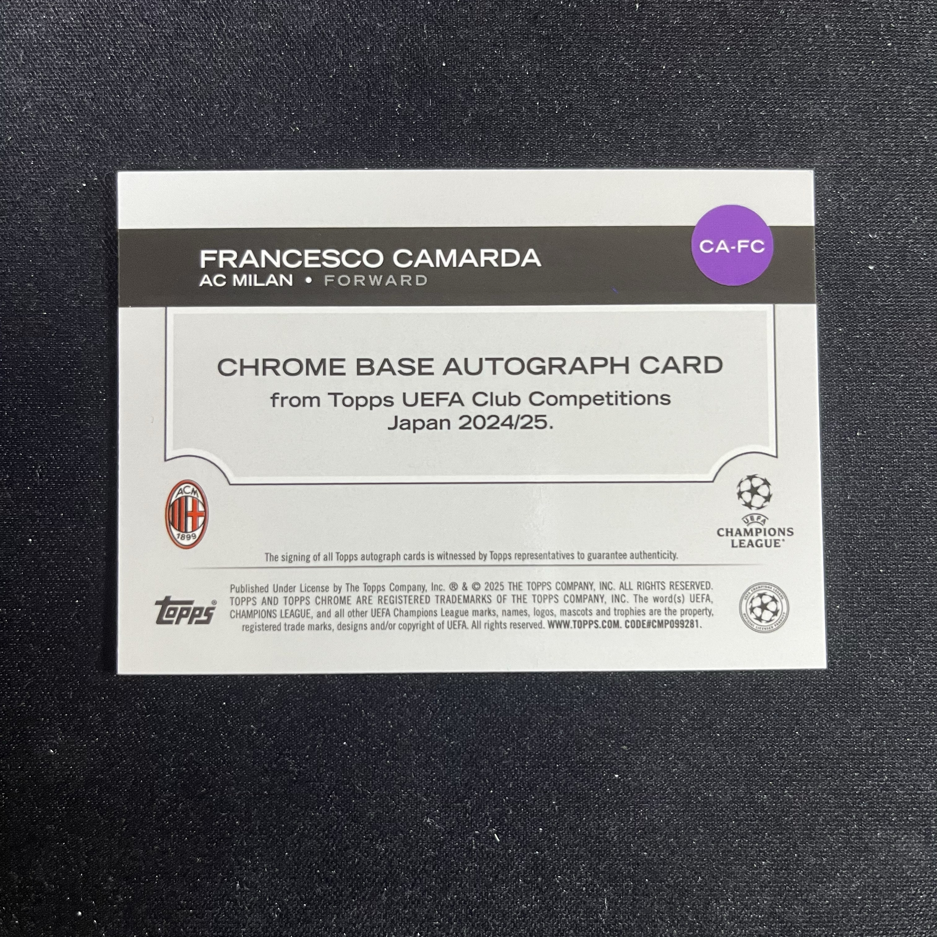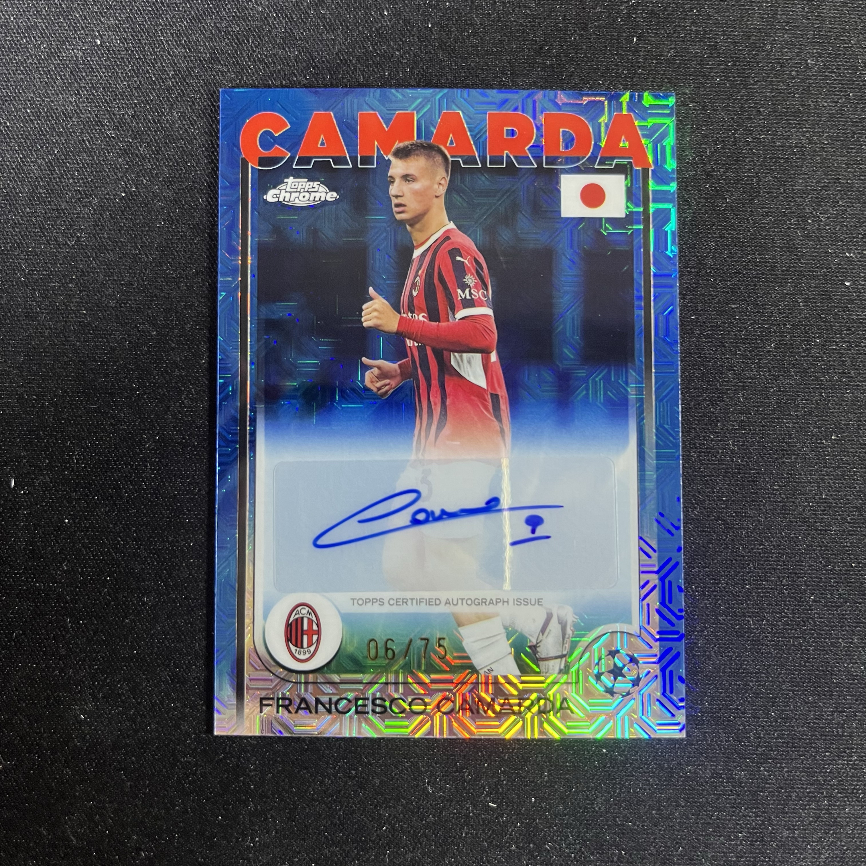 2024-25 Topps Chrome 日版 樱花 UCC Francesco Camarda 卡马尔达 06/75编 蓝MOJO折射 签字 AC米兰 卡品如图 收藏必备【超玩代卖 嘿嘿】